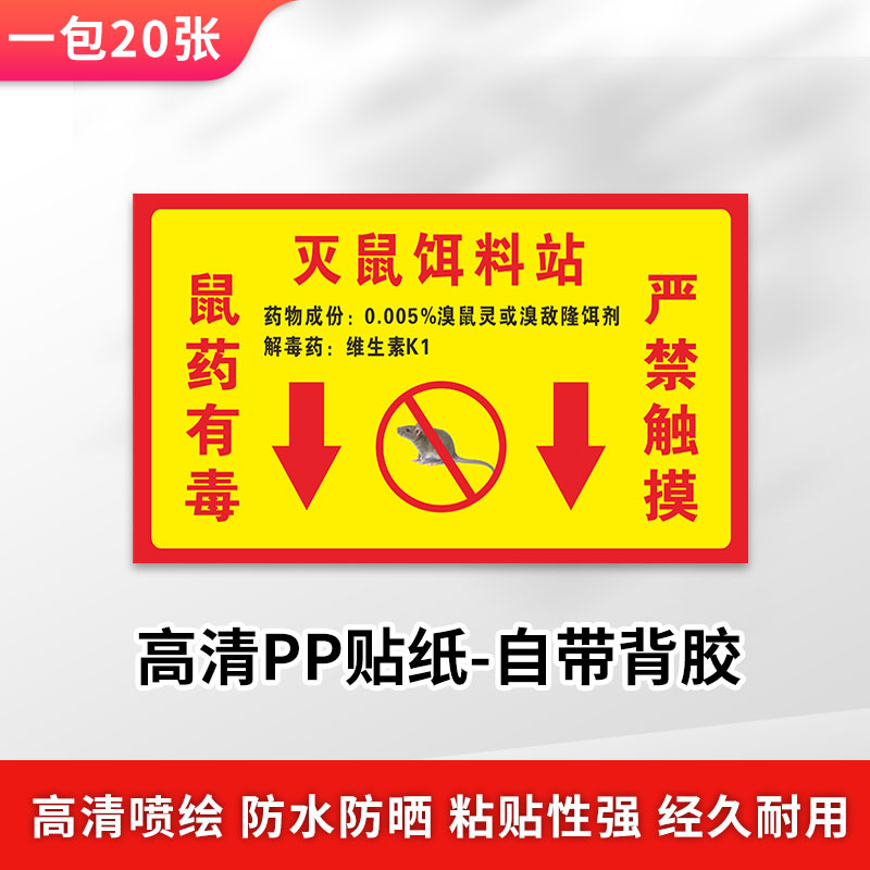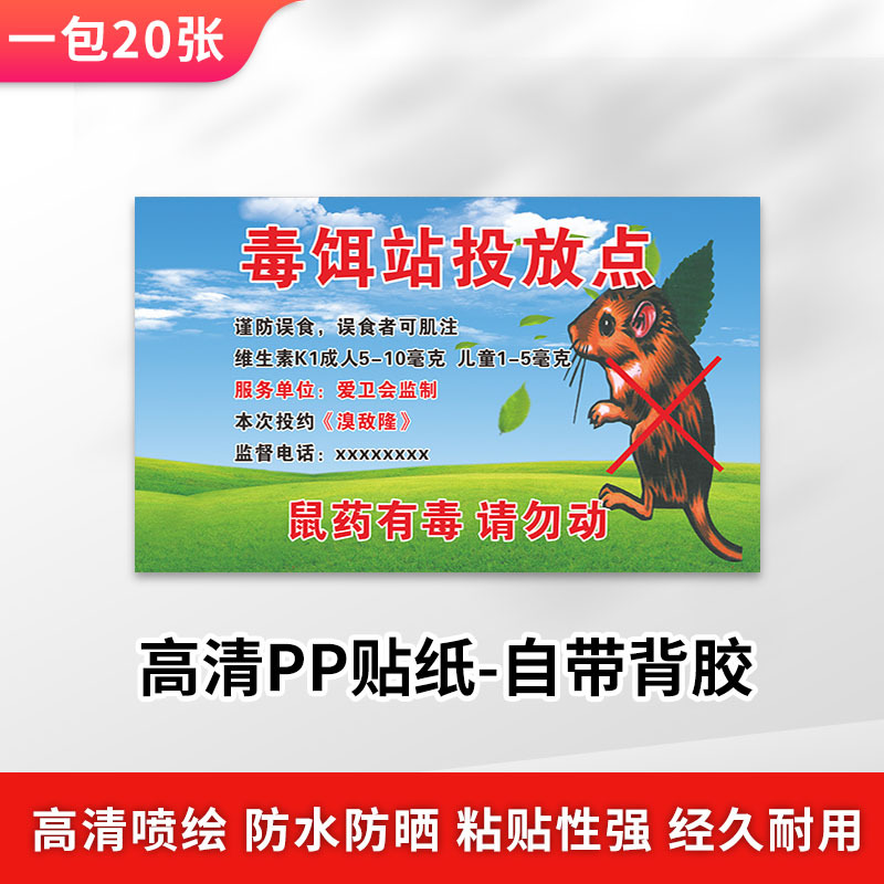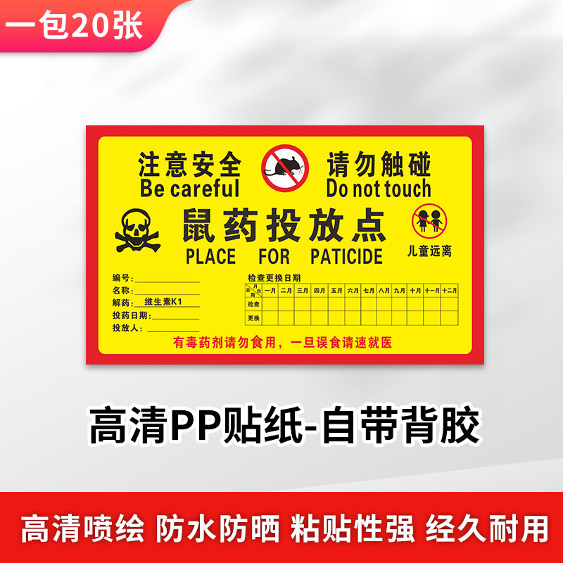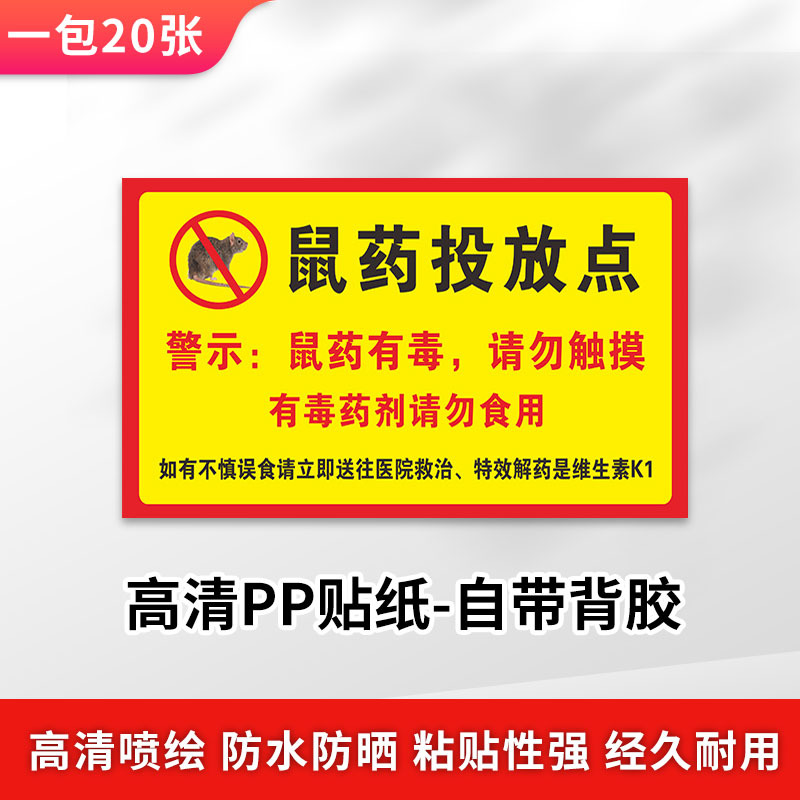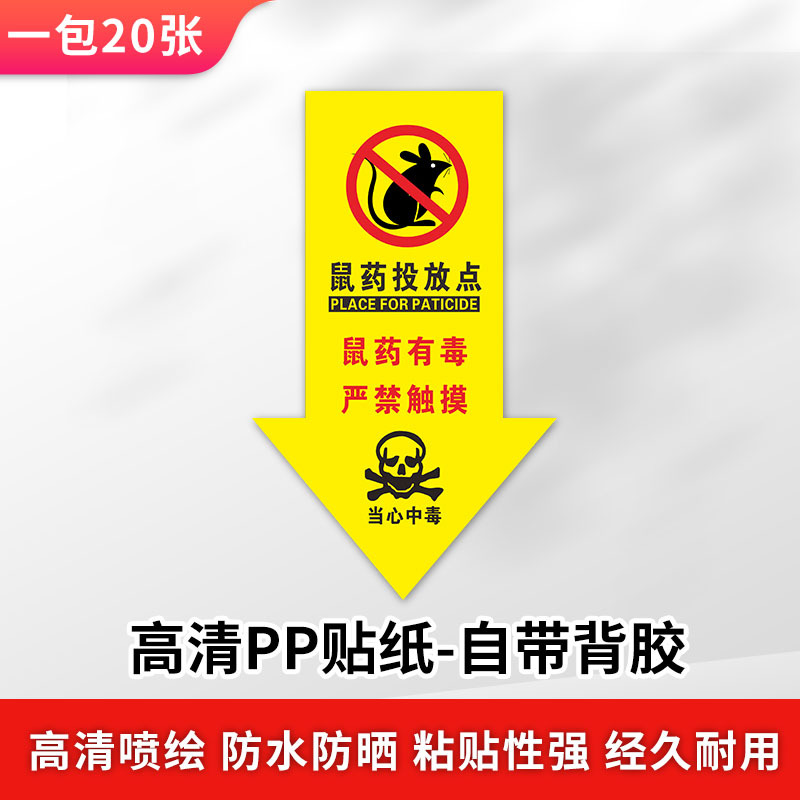 쥐 독 드롭 포인트 프롬프트 마우스 박스 독 미끼 역 마우스 하우스 스티커 라벨 PVC 스티커 안전 경고 스티커