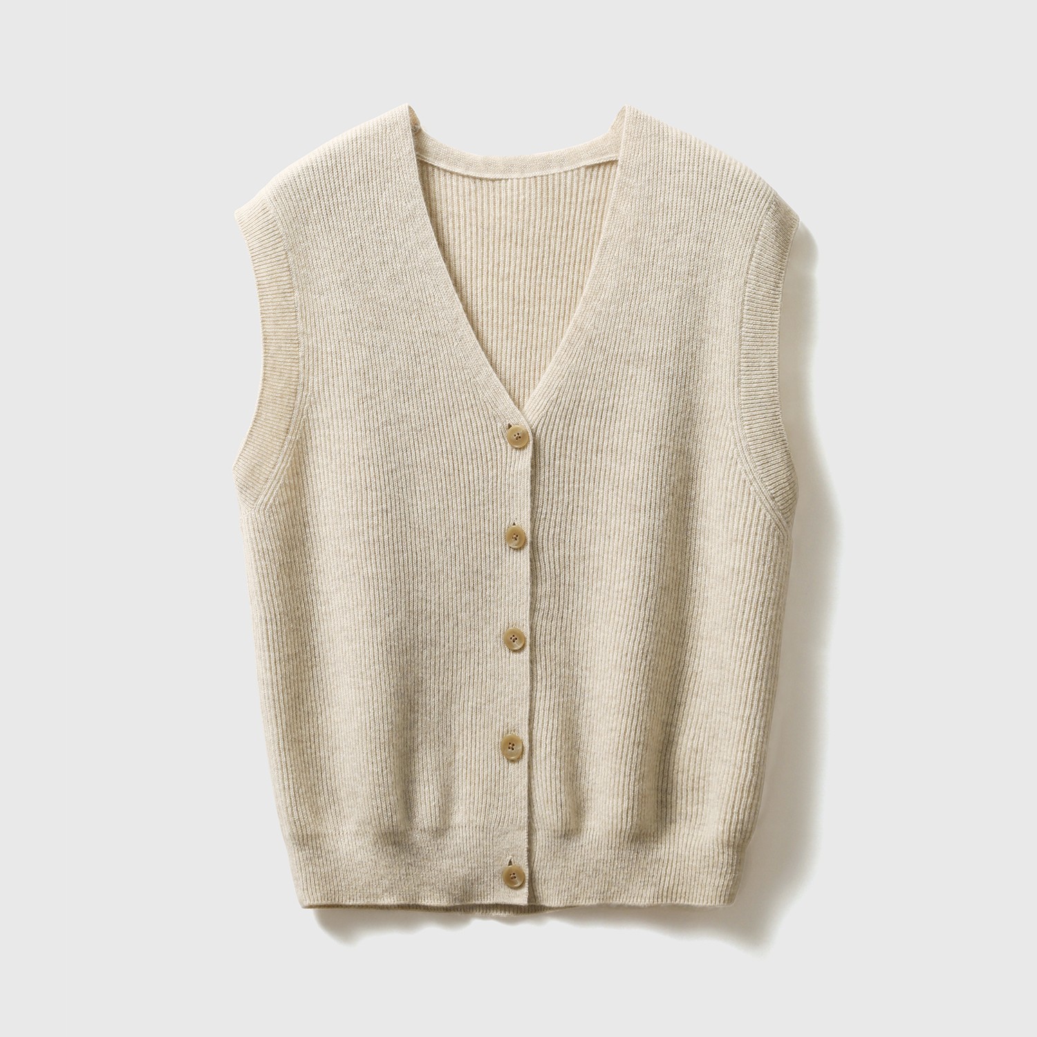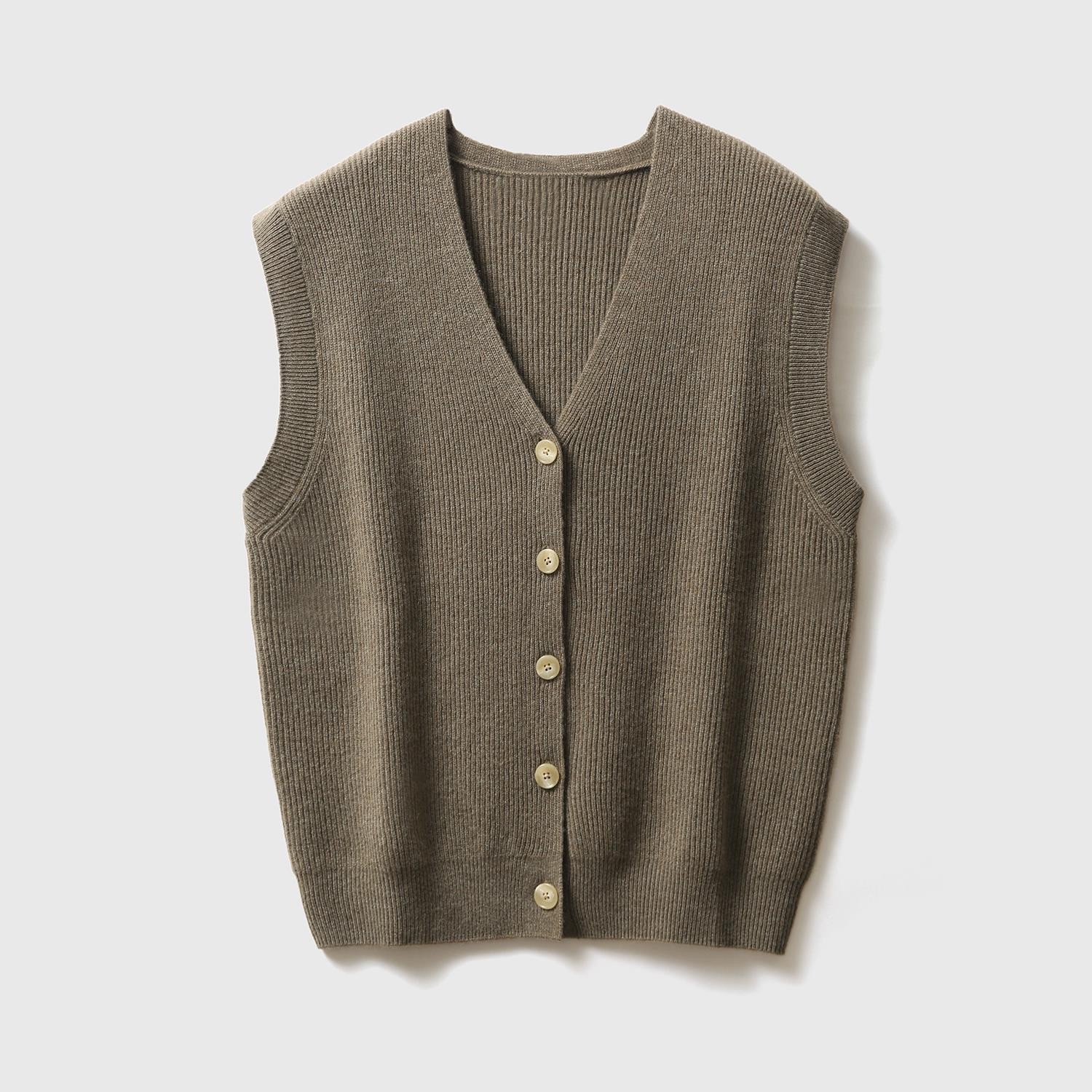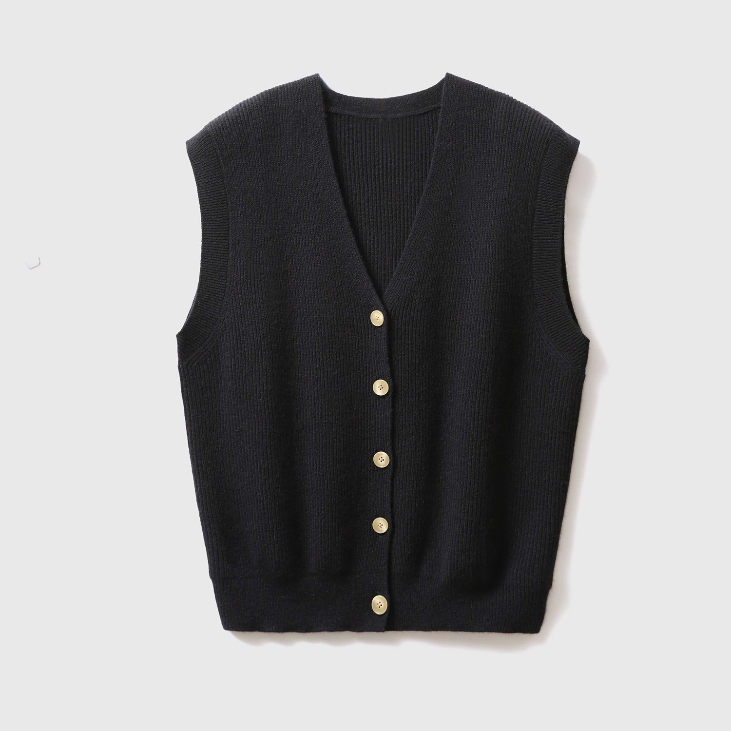 빈티지 퓨어 울 100 스웨터 조끼 여성용 V-넥 물고기 스케일 니트 카디건 중공 가을과 겨울 새로운 조끼스토어 가기