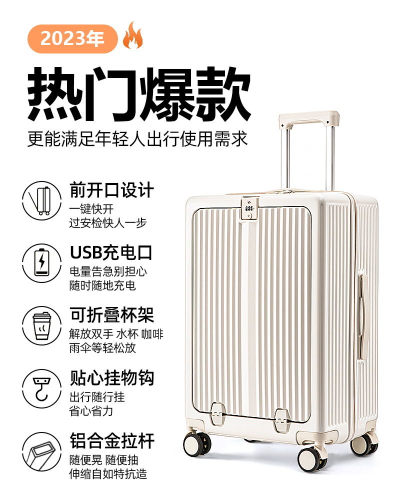 수하물 케이스 유니버설 휠 대용량 여성용 20 인치 전면 오픈 리드 트롤리 케이스 탑승 케이스 비밀번호 가방 도매