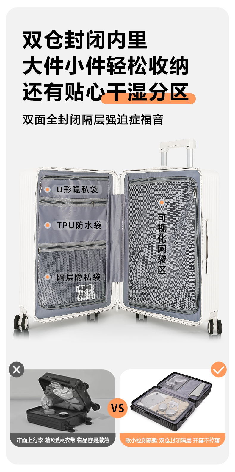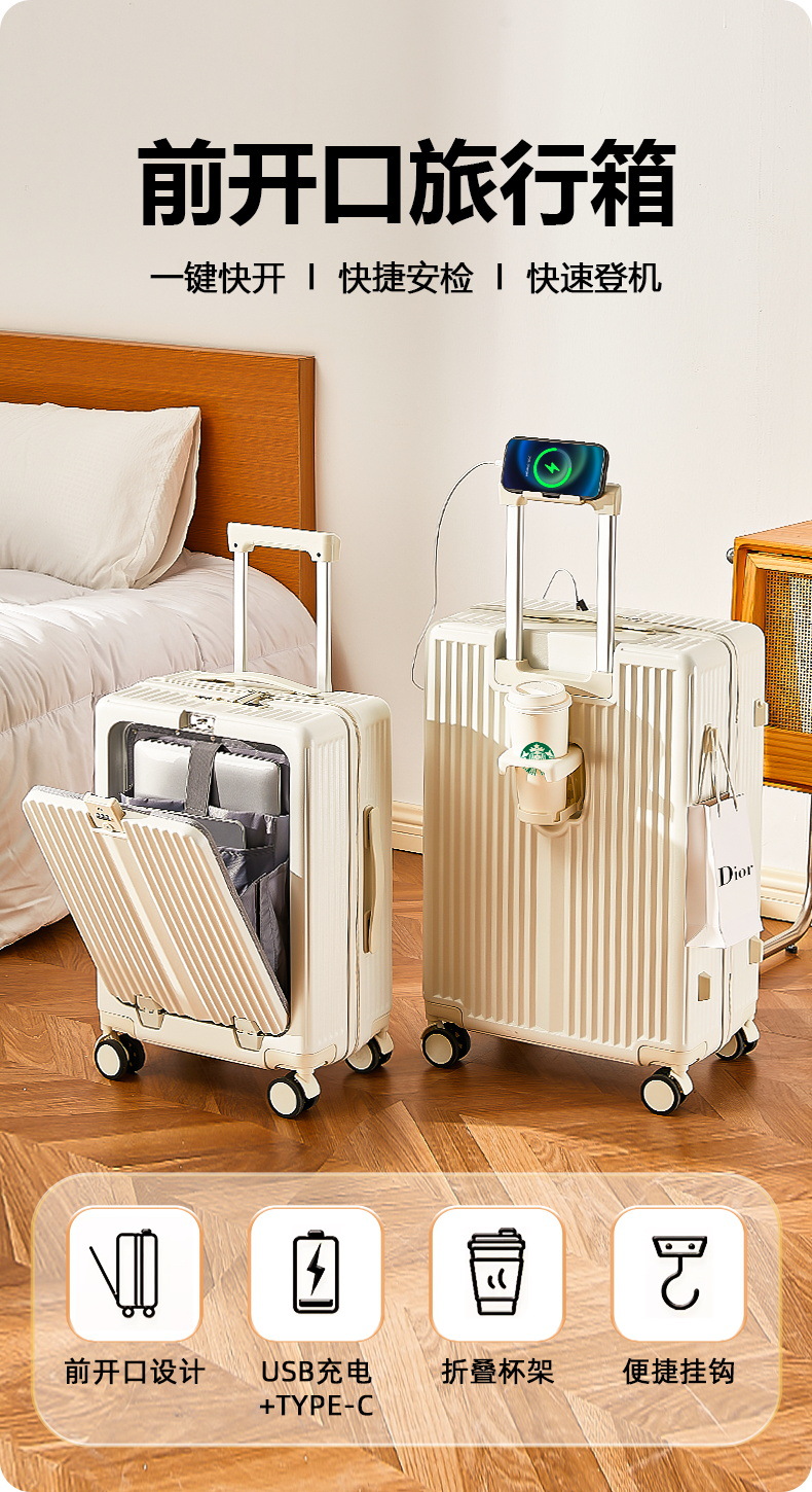 수하물 케이스 유니버설 휠 대용량 여성용 20 인치 전면 오픈 리드 트롤리 케이스 탑승 케이스 비밀번호 가방 도매스토어 가기