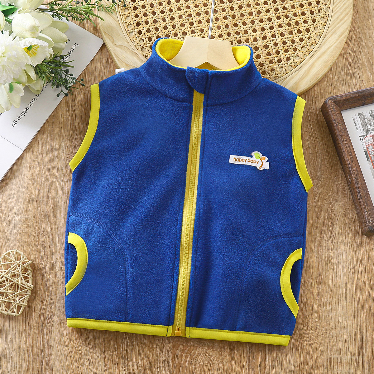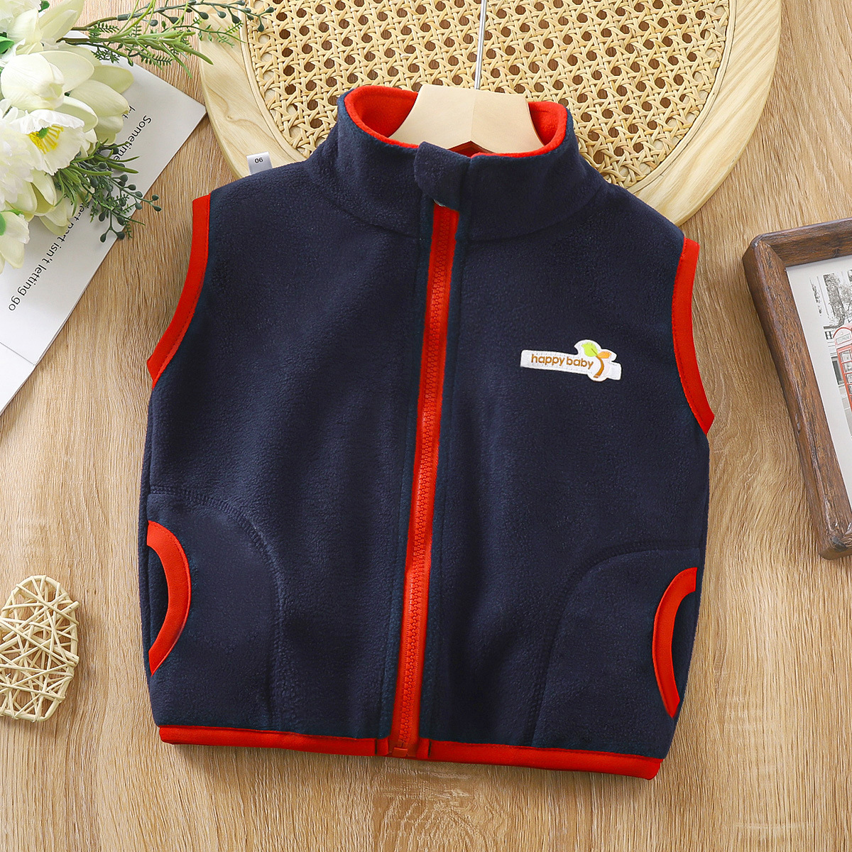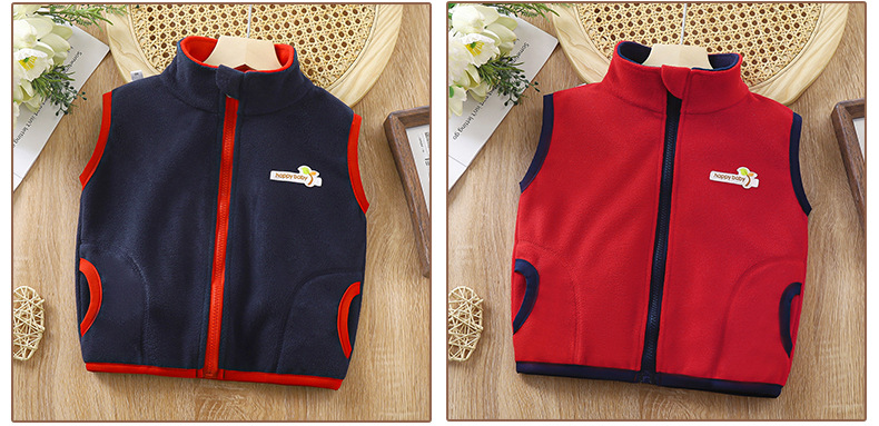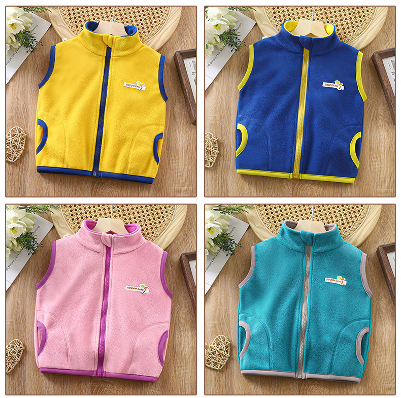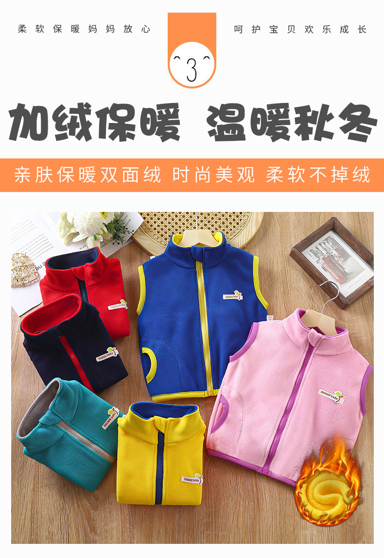 아동용 양면 플리스 조끼, 남아 여아용, 스탠드 칼라 지퍼 탑, 중소형 아동용 두꺼운 보온 가디건 재킷스토어 가기