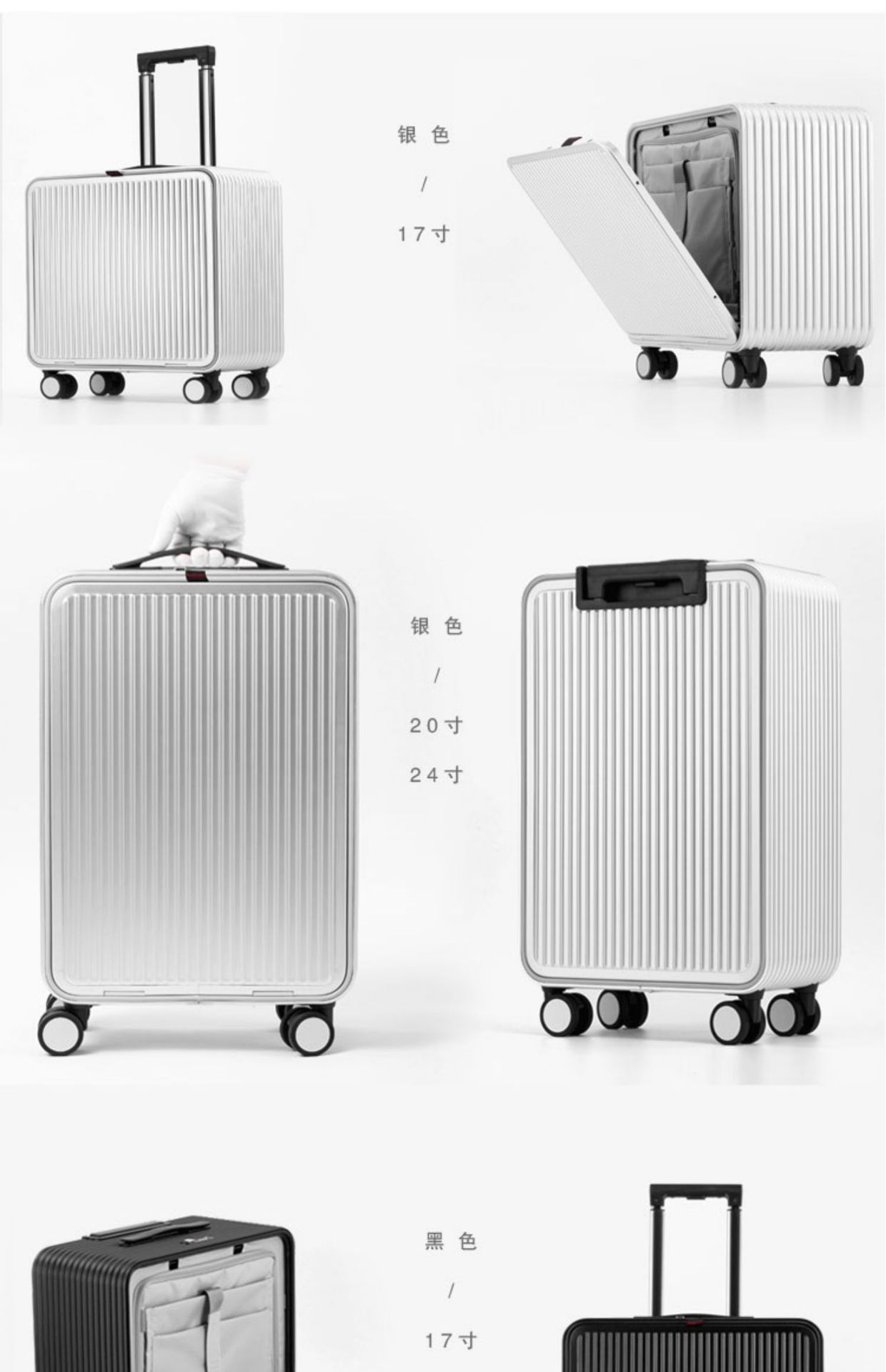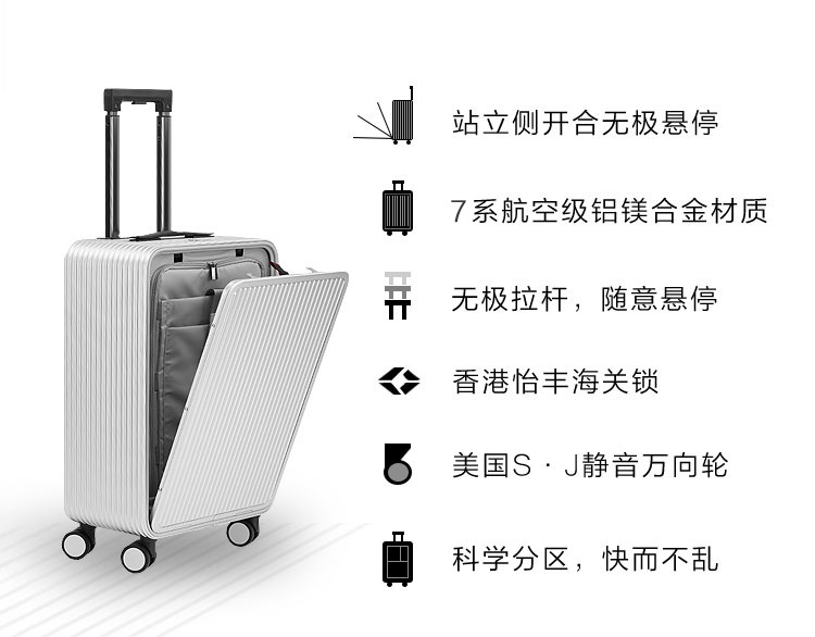 전면 개방 모든 알루미늄 마그네슘 합금 트롤리 케이스 여성용 20 인치 가방 18 인치 사이드 오프닝 가방 탑승 남성용 가방스토어 가기