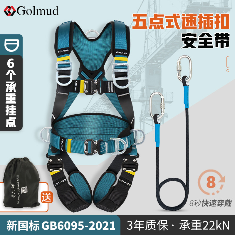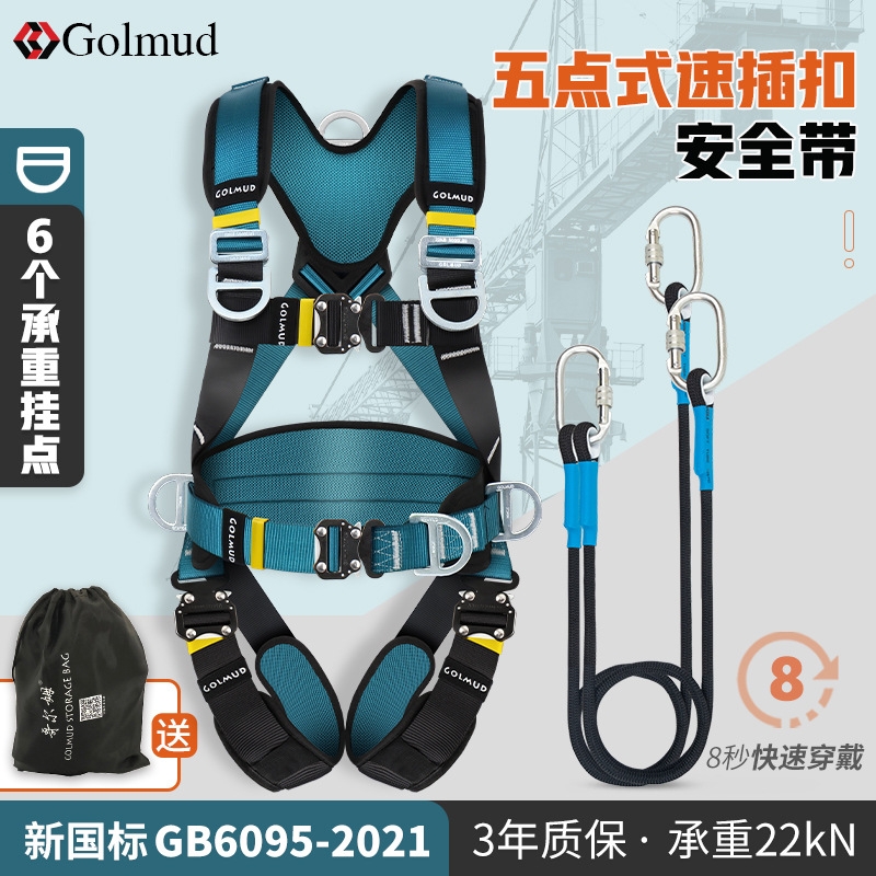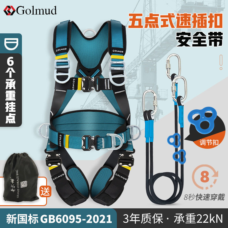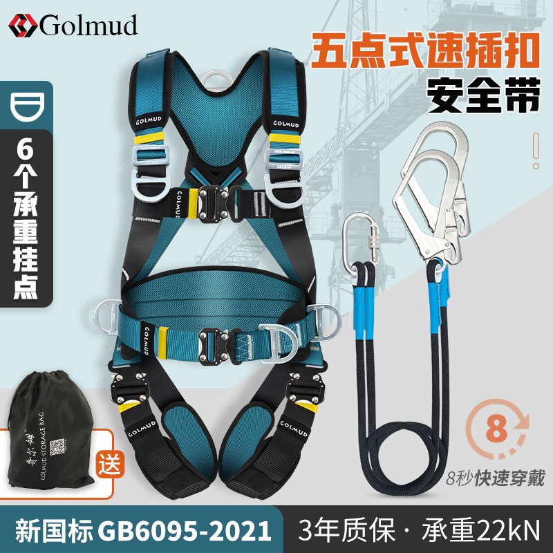 그램 빠른 삽입 5 점 안전 벨트 GB 공중 작업 전신 더블 후크 안전 로프 세트 GD3699