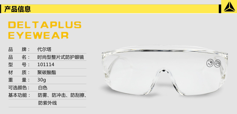 델타 보호 안경 고글 풀 피스 보호 충격 방지 UV 보호 안티 스크래치 안티 안개 101114