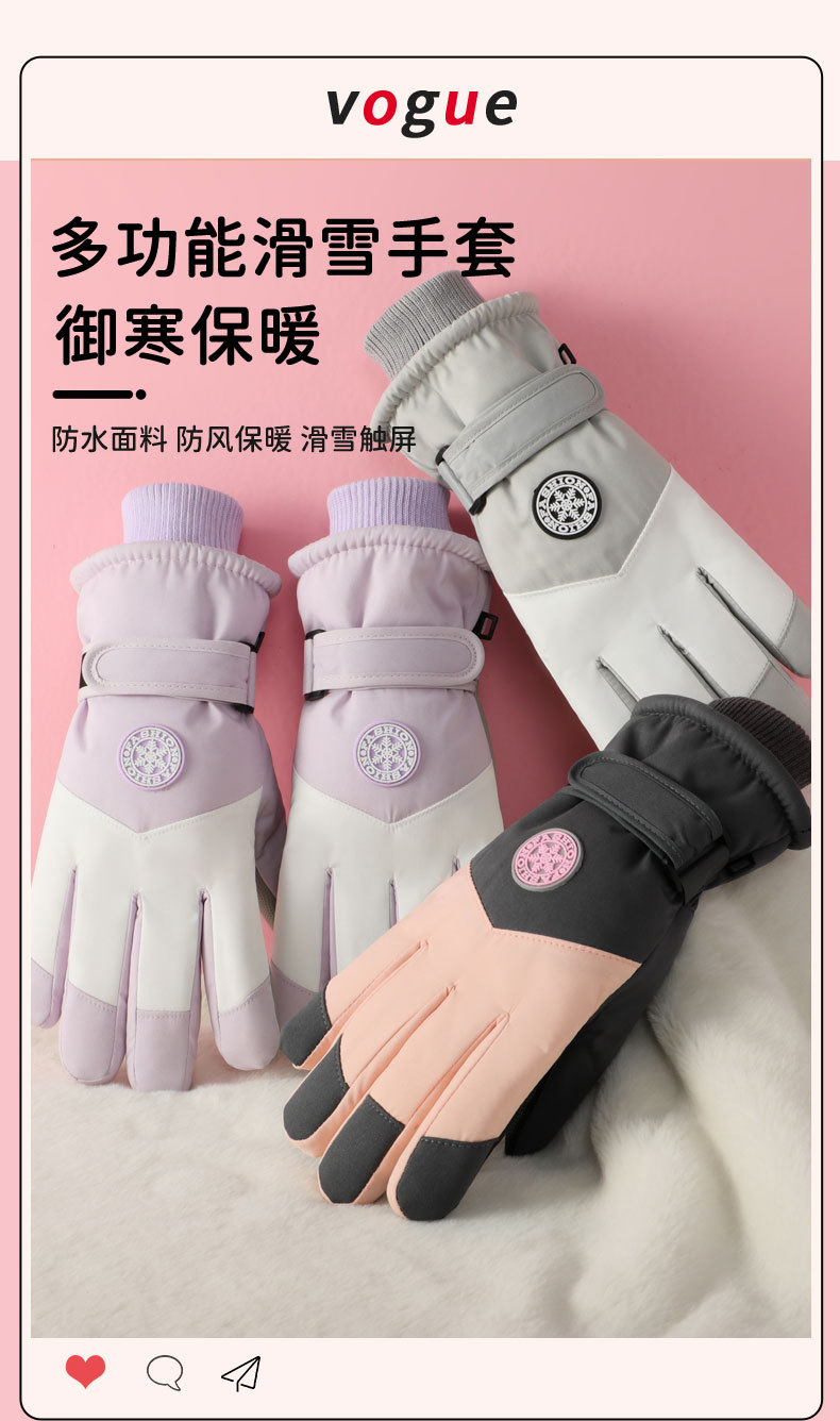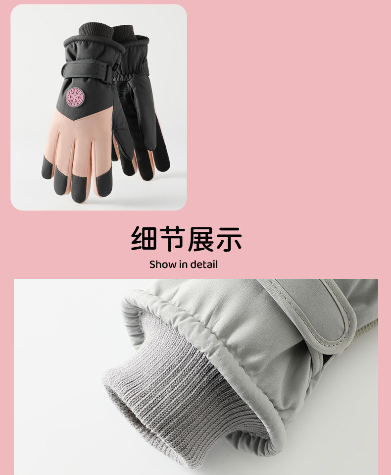 • HX-2 겨울 스키 스트레이트 핑거 미디엄 라운드 마크 여성용 그레이 핑크