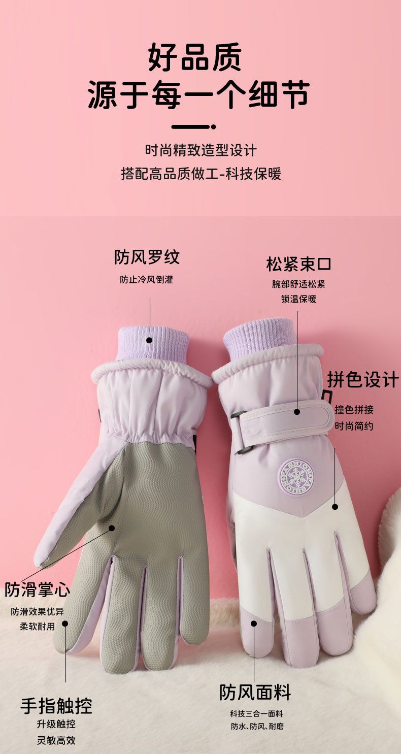 • HX515 스키 곡선 손가락 탄성 여성 장갑 핑크