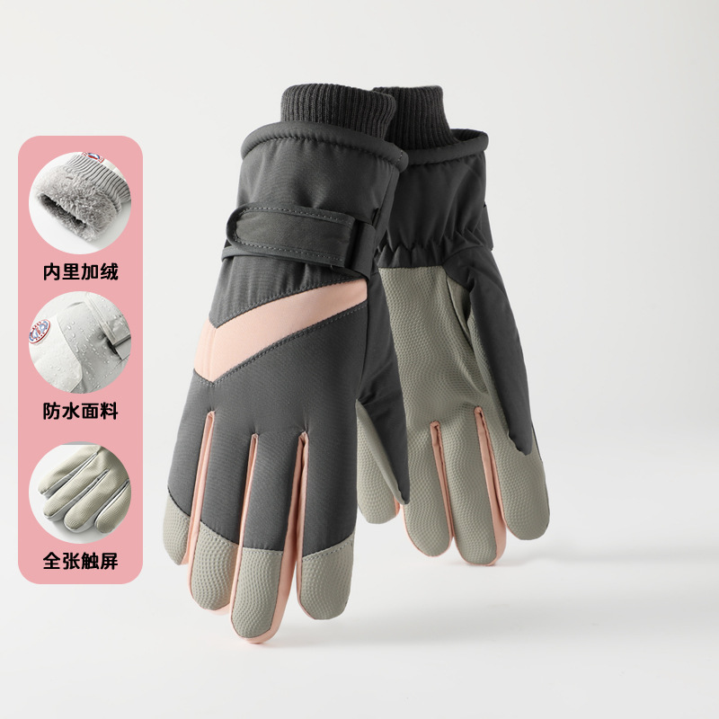 가을 겨울 남성용 및 여성용 스키 장갑, 방풍 및 방수, 야외 라이딩 오토바이, 벨벳 및 두꺼운 따뜻한 손가락 장갑