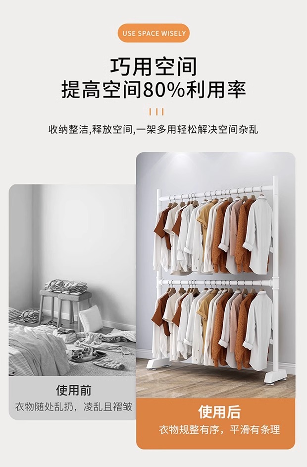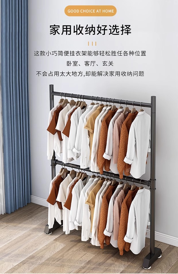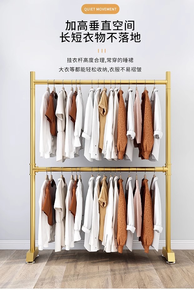 침실 더블 레이어 코트 랙 바닥 더블 로드 들어 올릴 수있는 가정용 좁은 슬롯 실내 기숙사 발코니 의류 랙스토어 가기