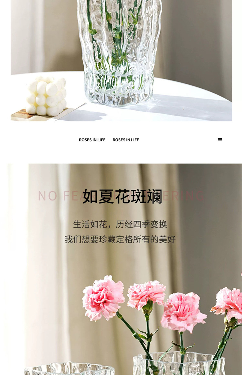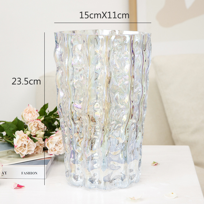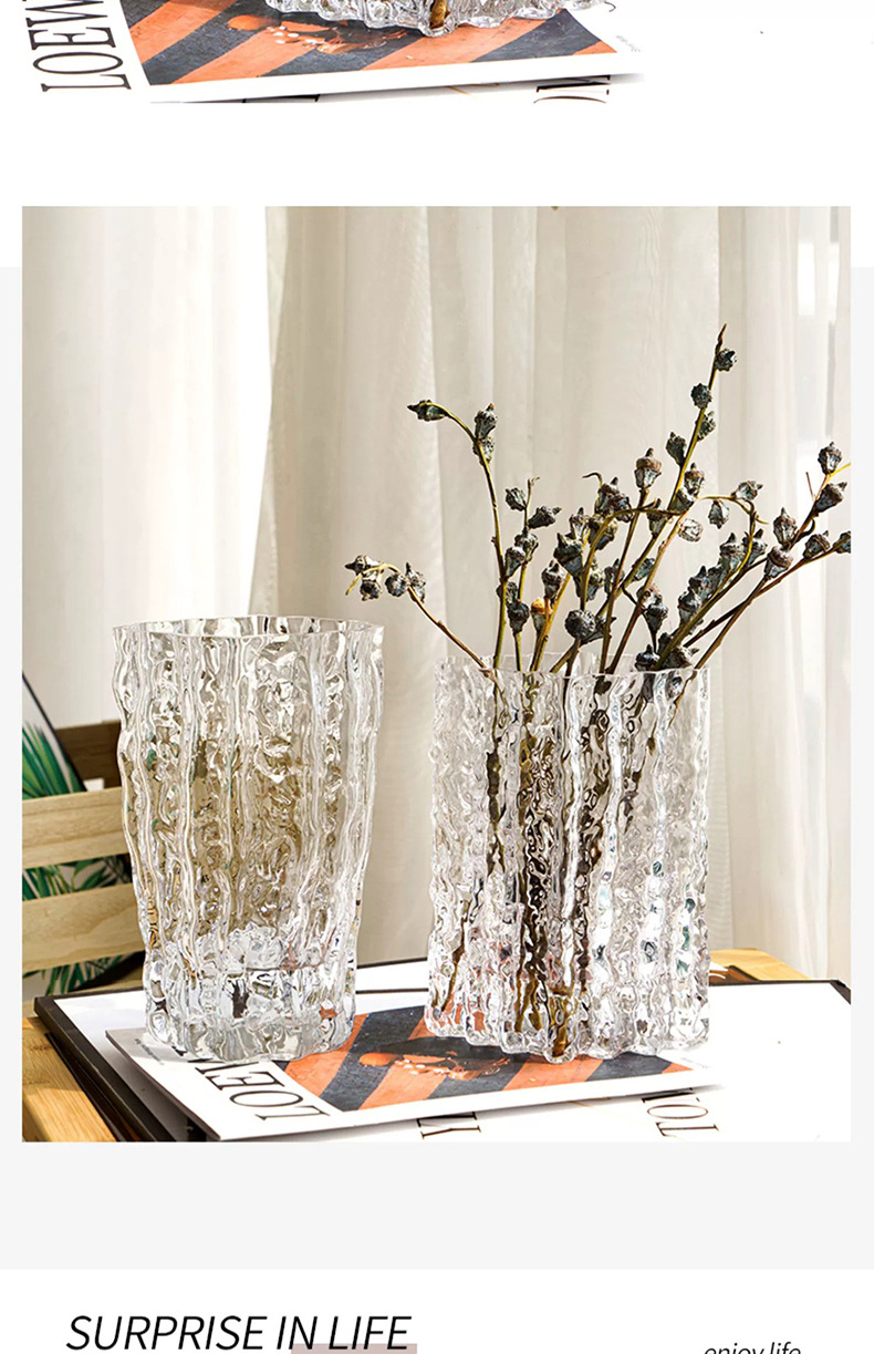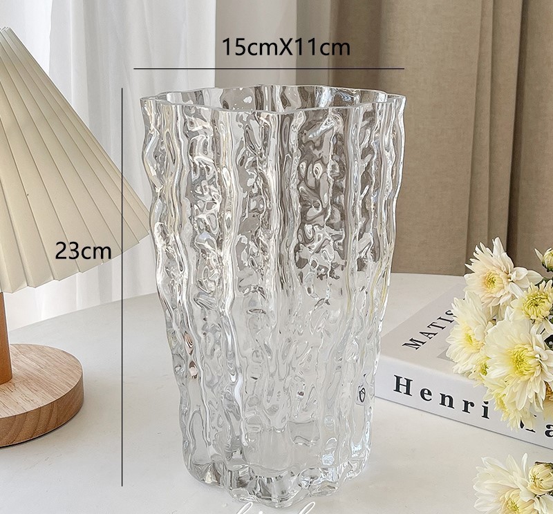 스타일 고가 핀란드 빙하 투명 유리 꽃병 거실 대구경 꽃꽂이 장식품 장식 공예품스토어 가기