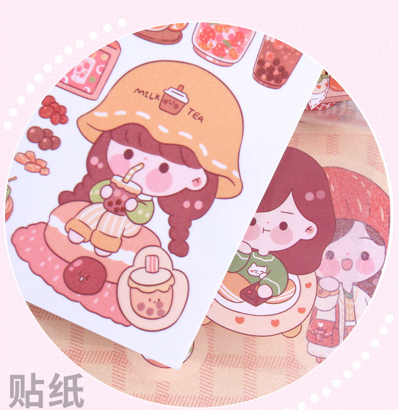 새로운 Huatian 사각형 스티커 스티커 재료 500 + 학생 만화 귀여운 손 계정 스티커 코일 북스토어 가기