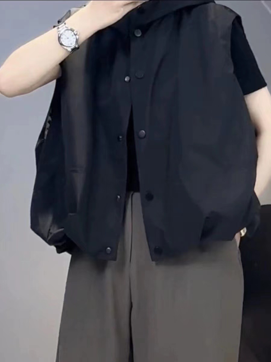 유럽 역 캐주얼 웨스턴 스타일 모든 매치 민소매 호박 후드 조끼 여자의 디자인 느슨한 졸라매는 끈 조끼 최고 가을스토어 가기