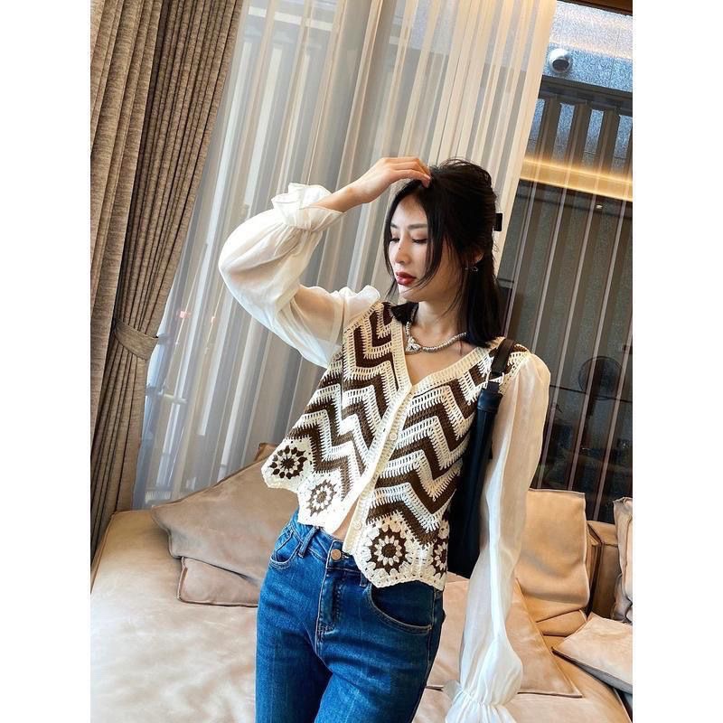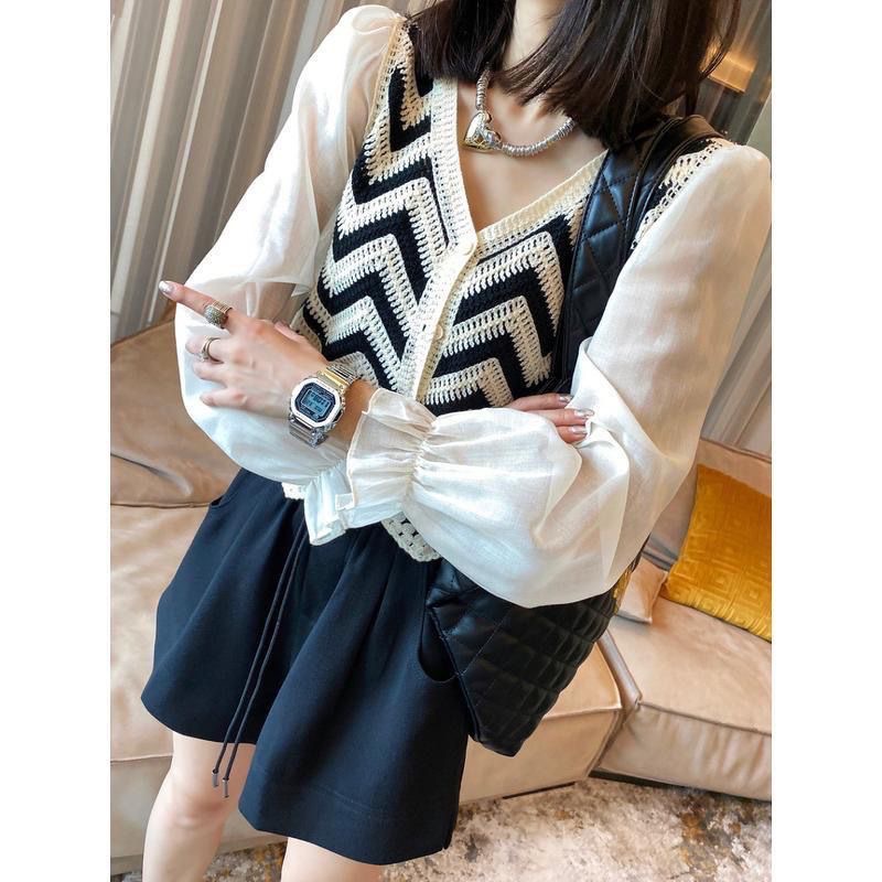 폭발적인 니트 스티칭 쉬폰 모리 스타일 작은 신선한 육체 덮음 배 슬리밍 작은 여자 마름모에 적합