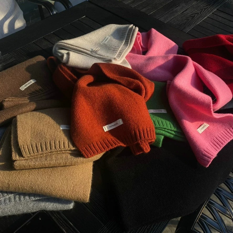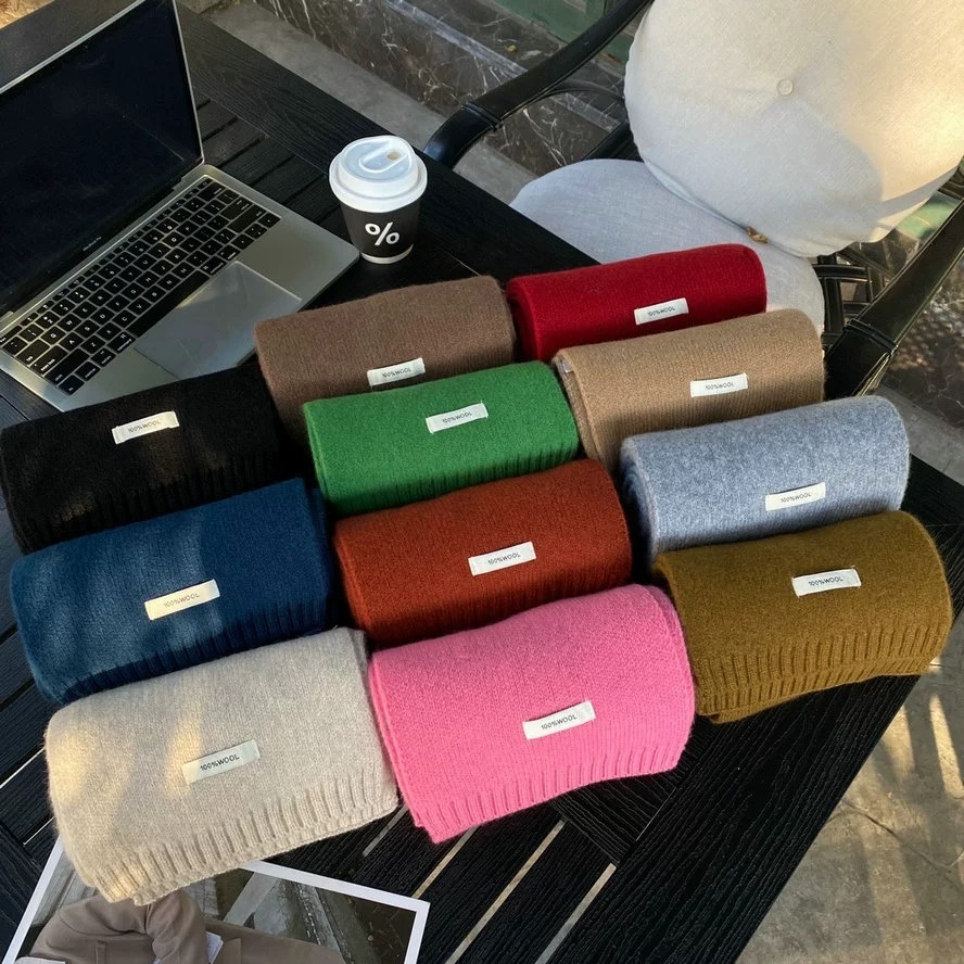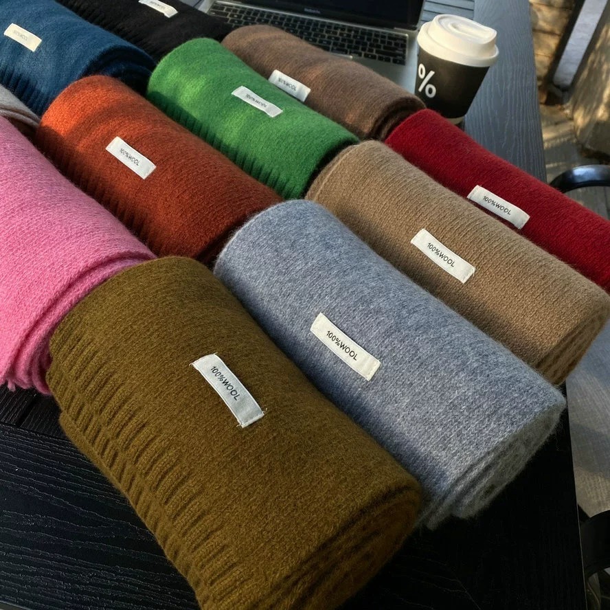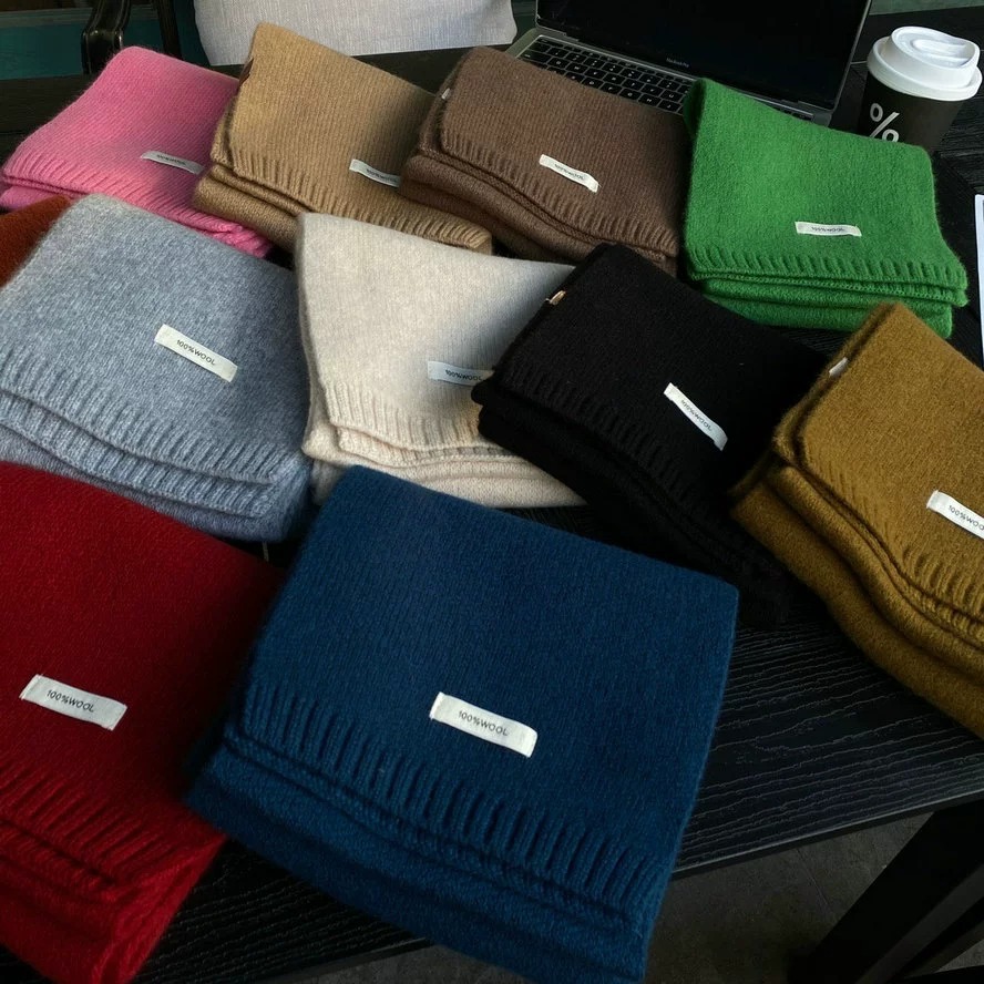 100% WOOL 호주 순수 WOOL 스카프 겨울 다목적 단색 목도리 학생과 커플을위한 이중 목적 따뜻한 스카프스토어 가기