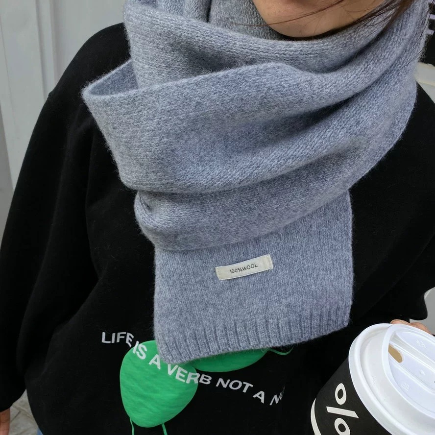 100% WOOL 호주 순수 WOOL 스카프 겨울 다목적 단색 목도리 학생과 커플을위한 이중 목적 따뜻한 스카프