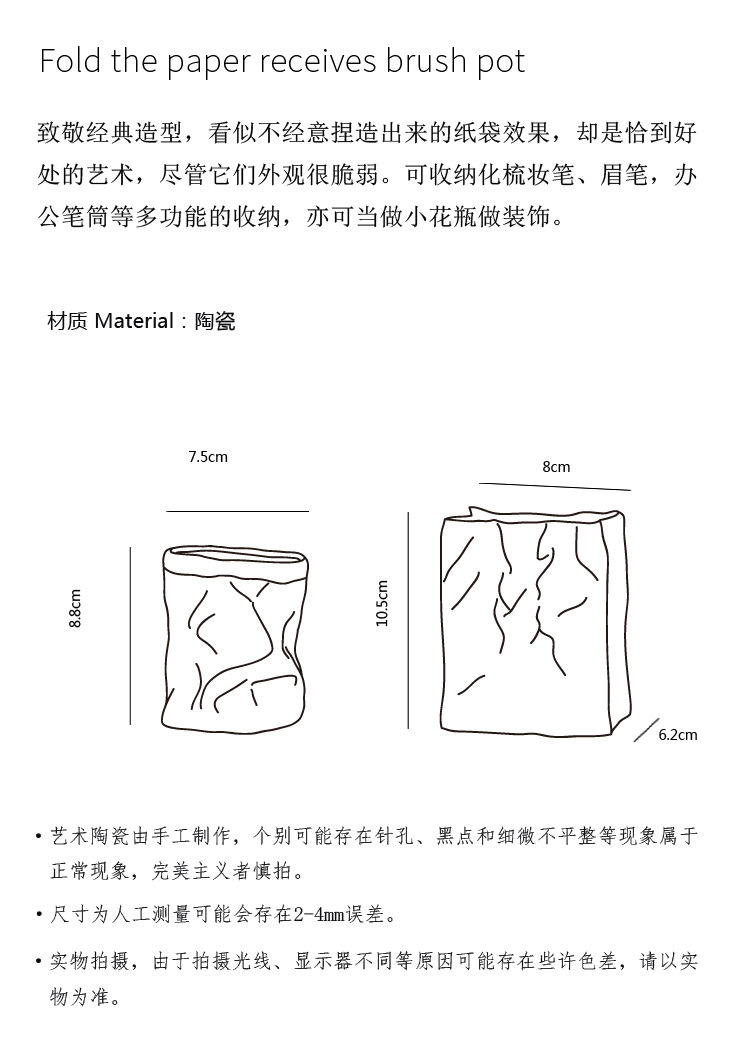 • 흰색 주름 종이 가방 보관 튜브