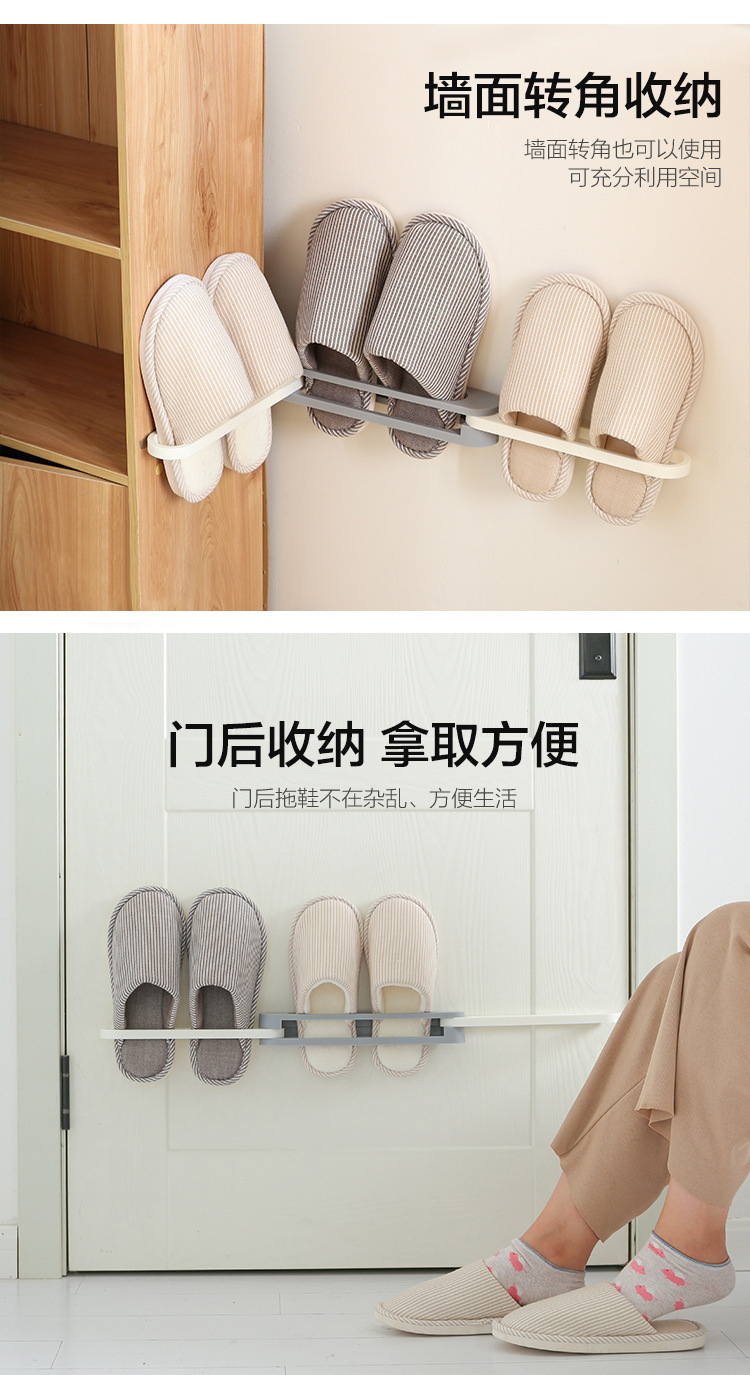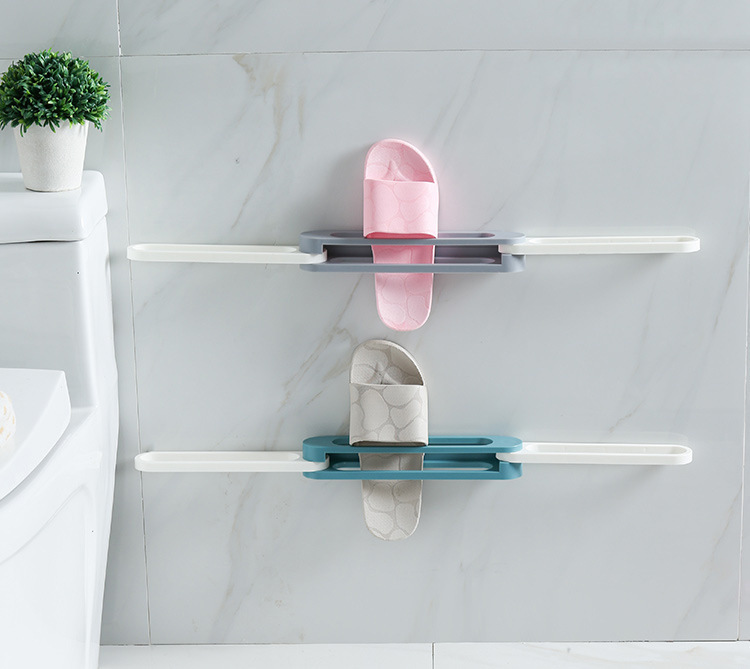 펀치 프리 접이식 3-in-1 다기능 벽걸이 형 슬리퍼 랙 개폐식 욕실 타월 수납 랙스토어 가기