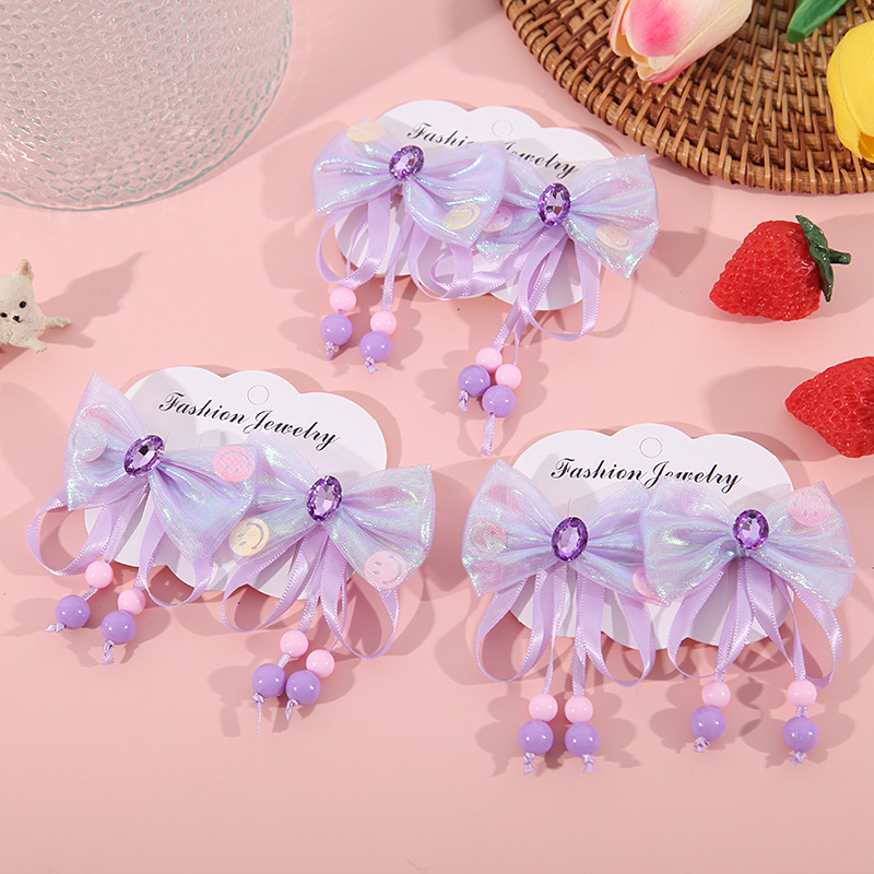 • 4 # 보라색 밝은 다이아몬드 활 머리핀 (한 쌍)