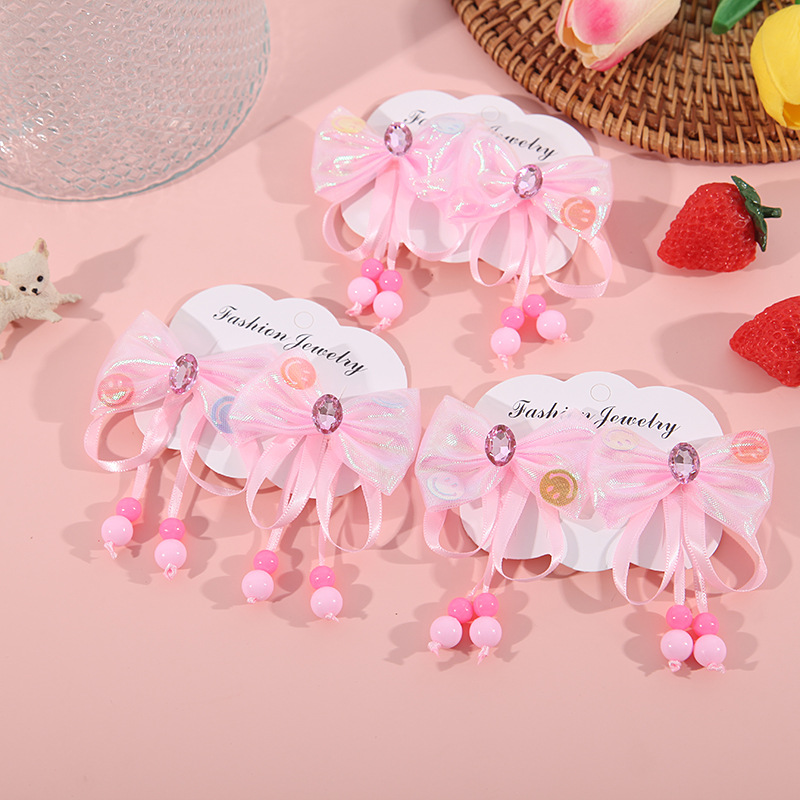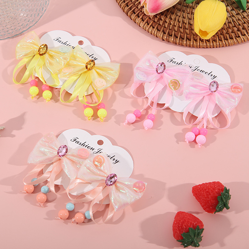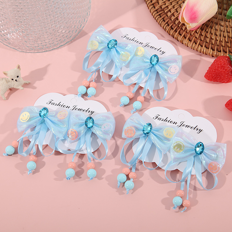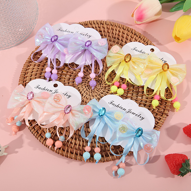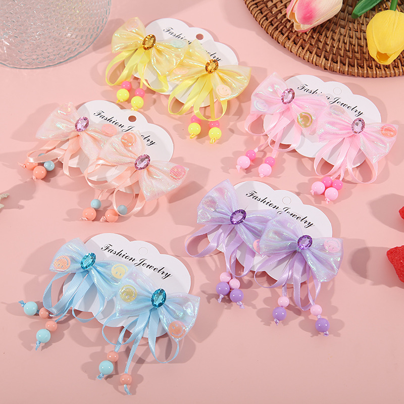 어린이 술 머리핀 밝은 다이아몬드 활 머리핀 어린 소녀의 귀여운 쌍 클립 고대 의상 공주 Hanfu 패브릭 헤어 액세서리