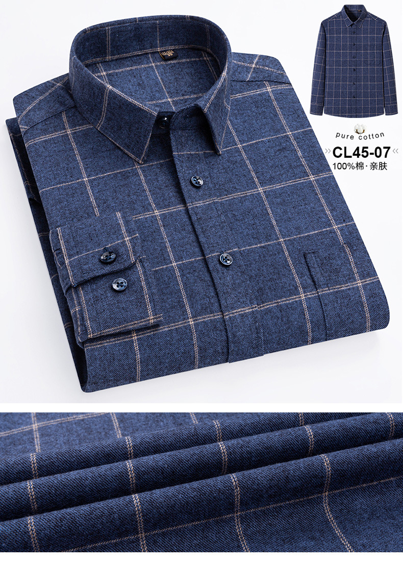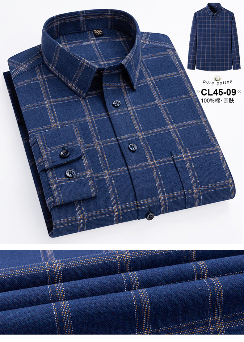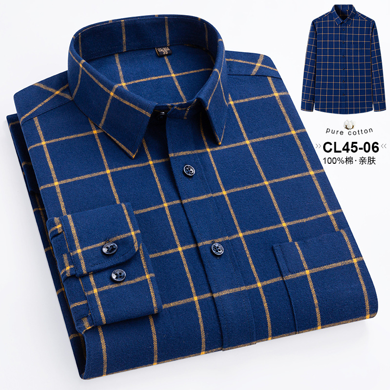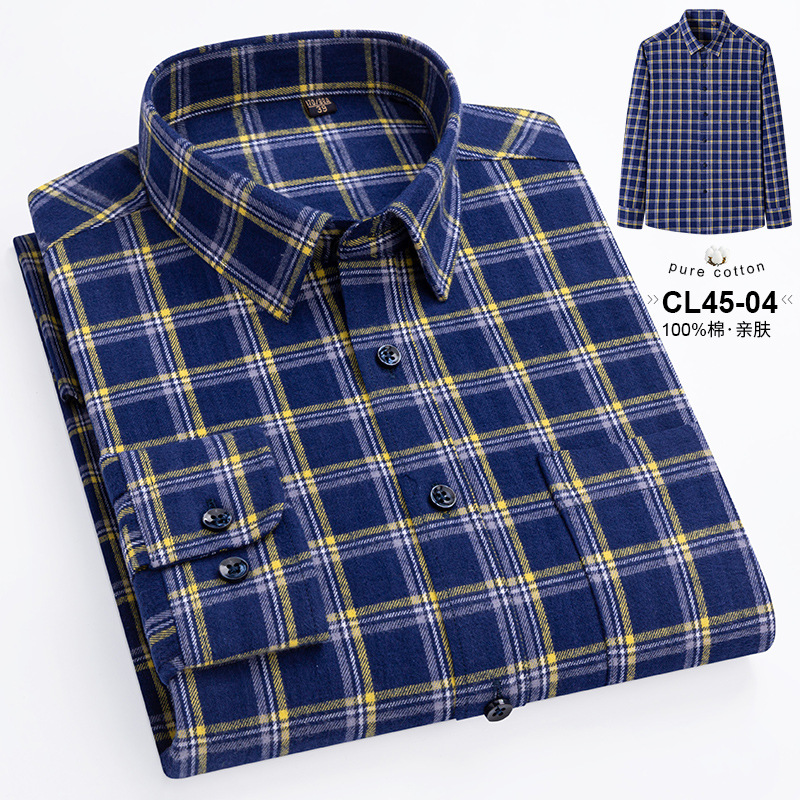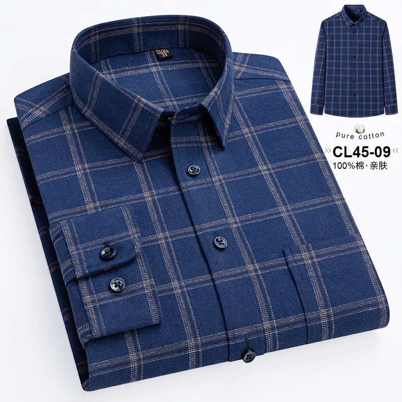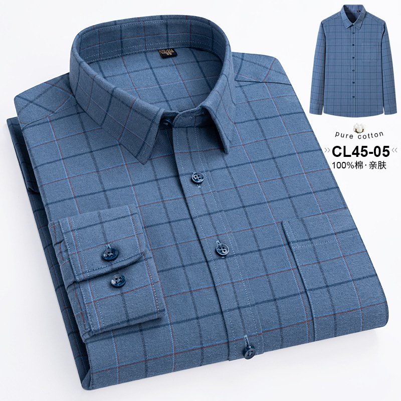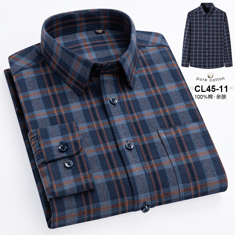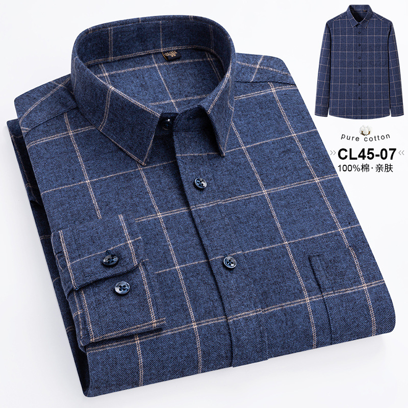 가을 2023 새로운 면 남자의 긴 소매 셔츠 비즈니스 캐주얼 복고풍 샌딩 격자 무늬 포켓 중년 셔츠