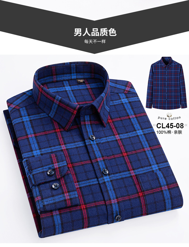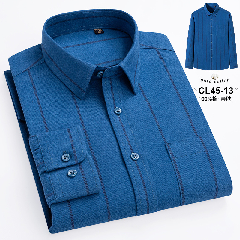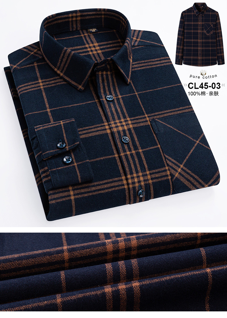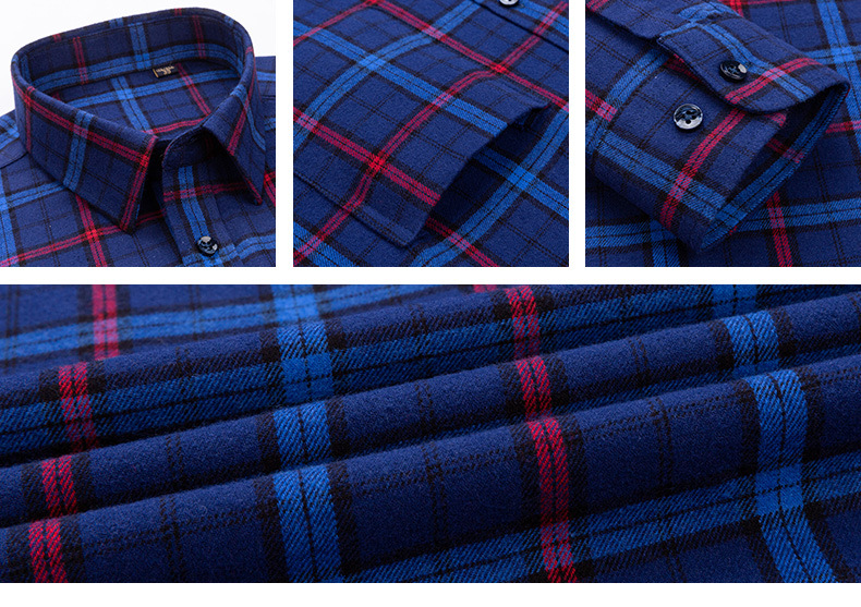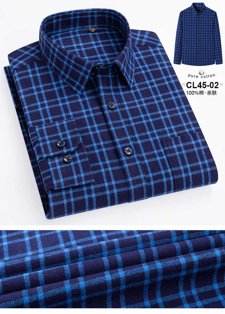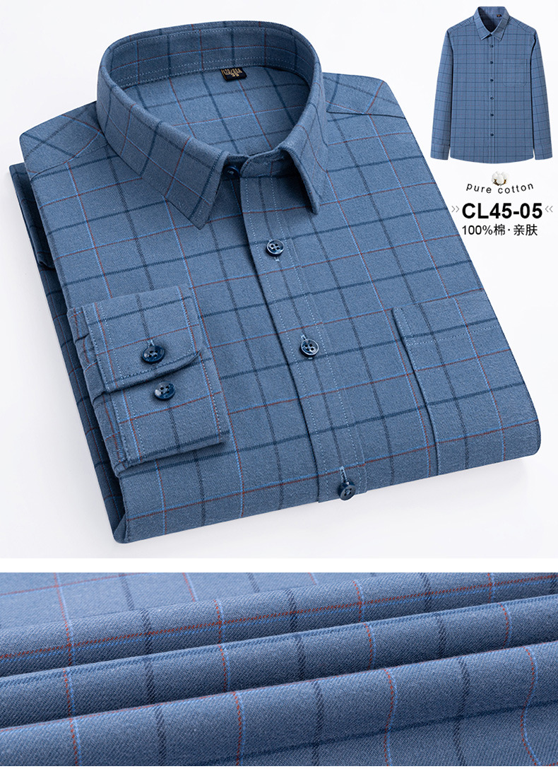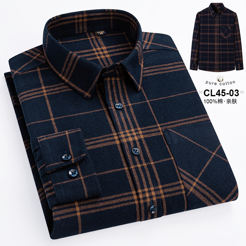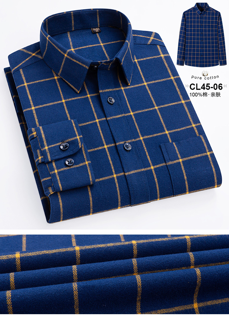 가을 2023 새로운 면 남자의 긴 소매 셔츠 비즈니스 캐주얼 복고풍 샌딩 격자 무늬 포켓 중년 셔츠