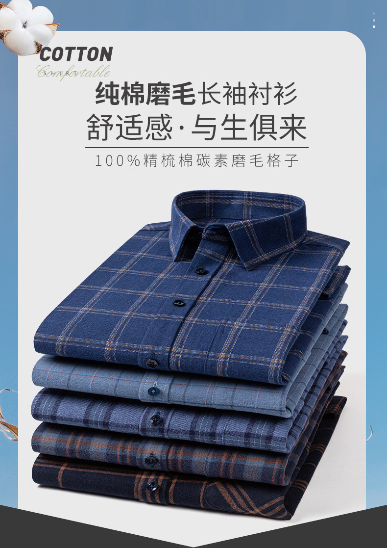 가을 2023 새로운 면 남자의 긴 소매 셔츠 비즈니스 캐주얼 복고풍 샌딩 격자 무늬 포켓 중년 셔츠스토어 가기