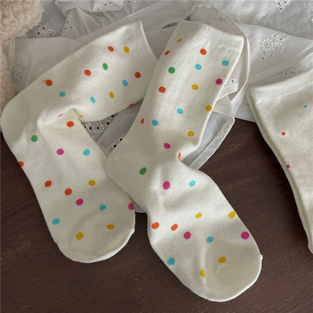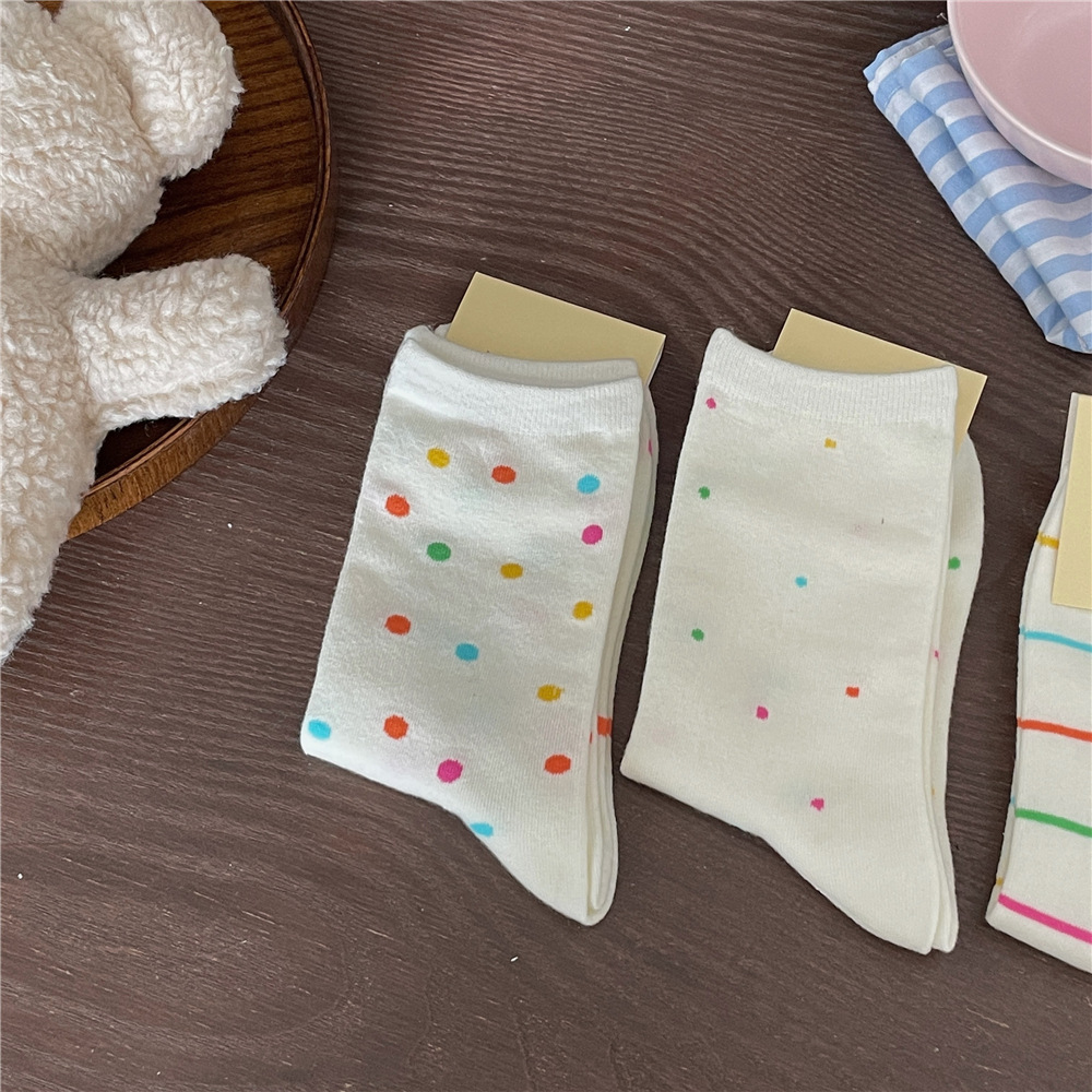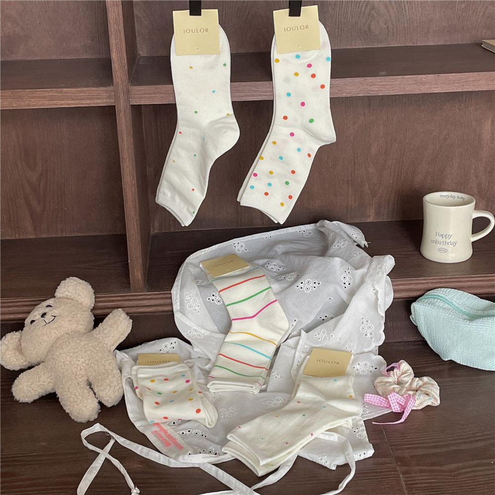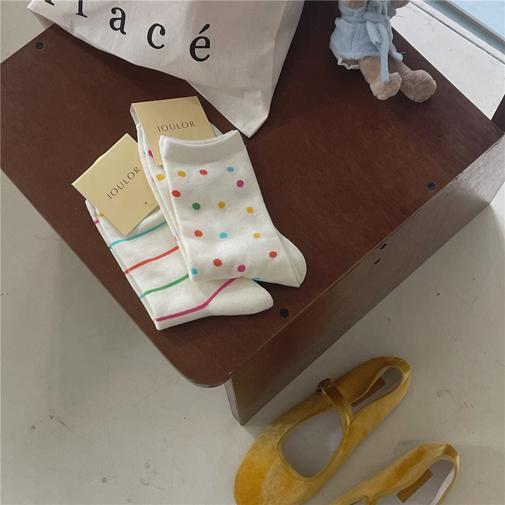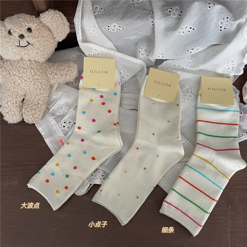 IOULOR 가을 컬러 웨이브 도트 걸 조수 양말 땀 흡수 캐주얼 면 양말 도파민 착용 튜브 양말 도매