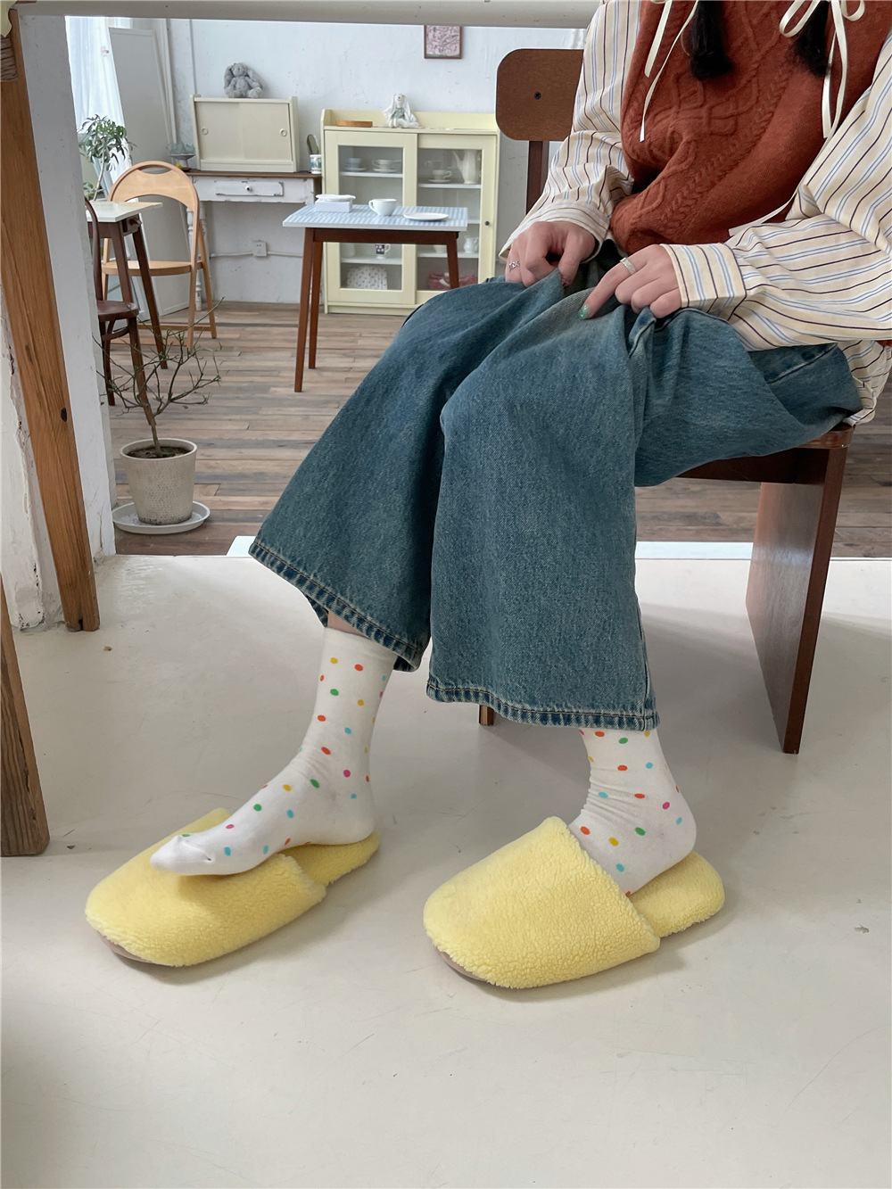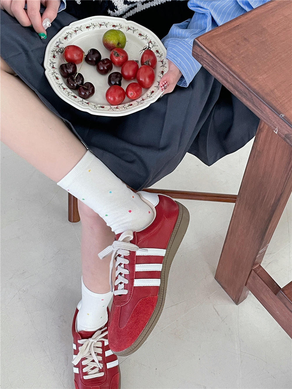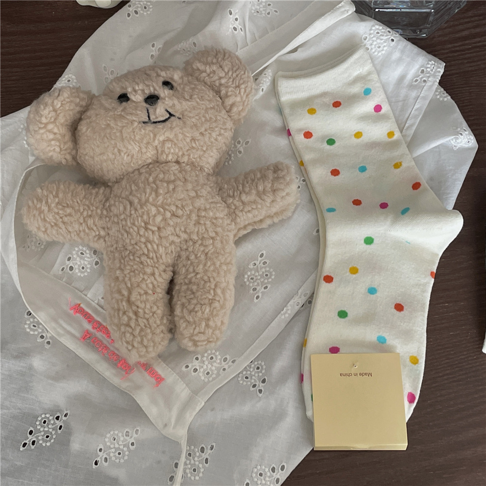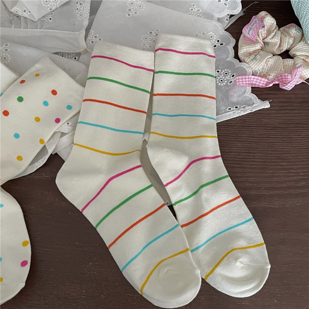 IOULOR 가을 컬러 웨이브 도트 걸 조수 양말 땀 흡수 캐주얼 면 양말 도파민 착용 튜브 양말 도매