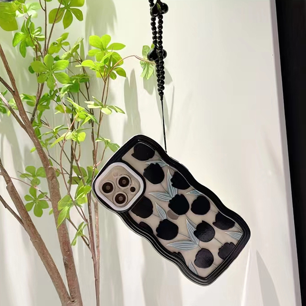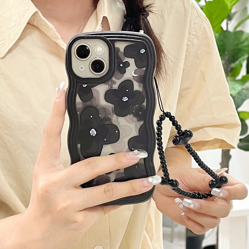빅 웨이브 iphone14 블랙 러브 안티 가을 소프트 케이스 보호 케이스 꽃 애플 13 15 16 휴대 전화 케이스