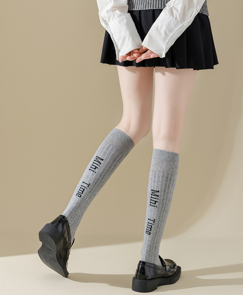 작은 다리 양말 여성용 봄과 가을 얇은 편지 양말 온라인 인기 JK 스타일 유행 여성 양말 수직 더미 양말 흑백 회색