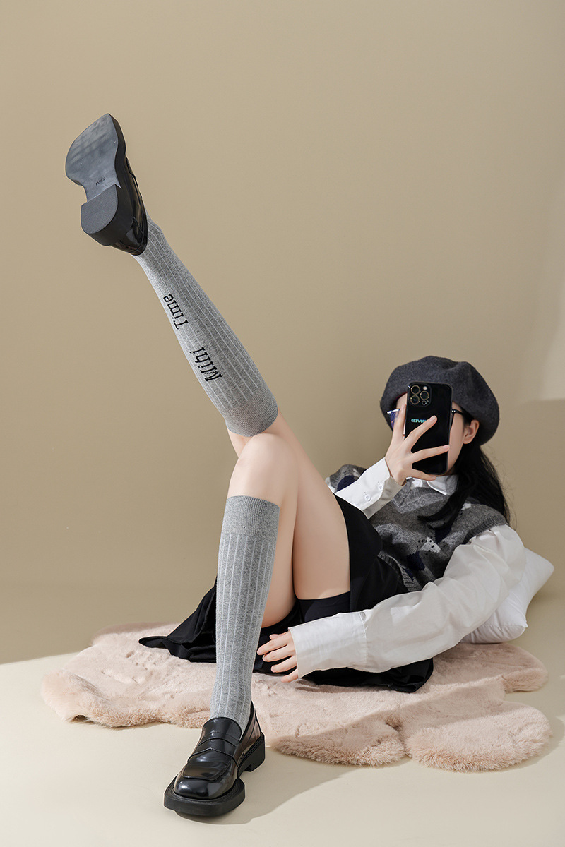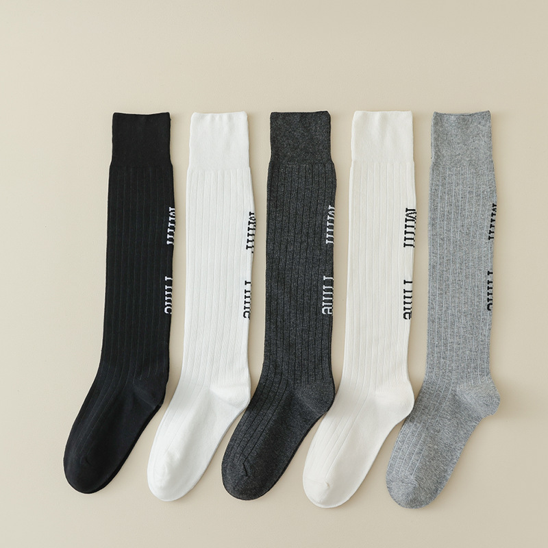 작은 다리 양말 여성용 봄과 가을 얇은 편지 양말 온라인 인기 JK 스타일 유행 여성 양말 수직 더미 양말 흑백 회색스토어 가기