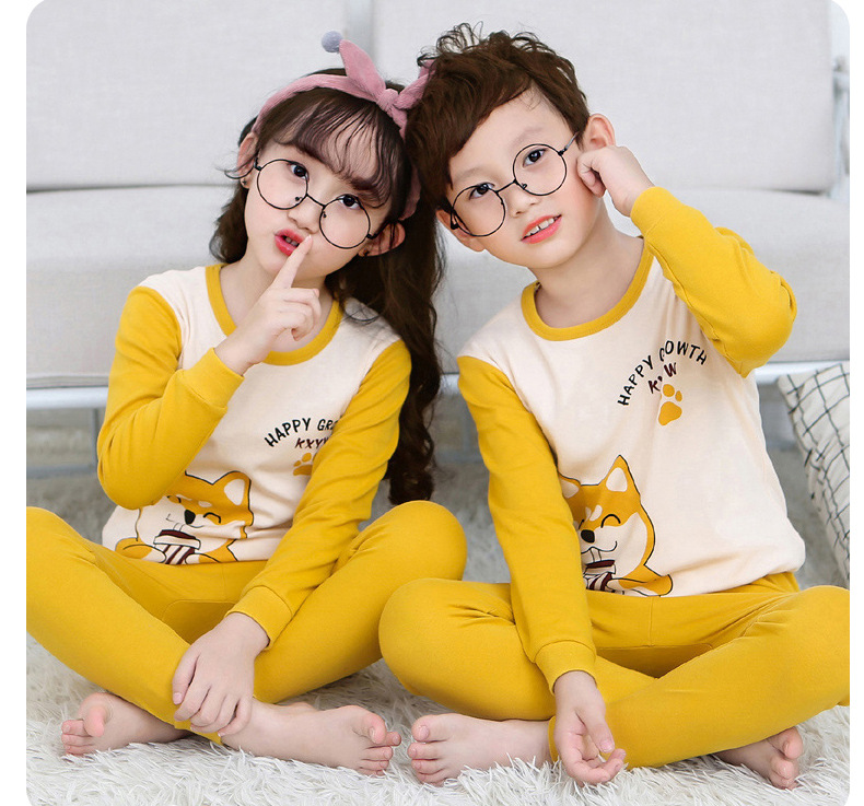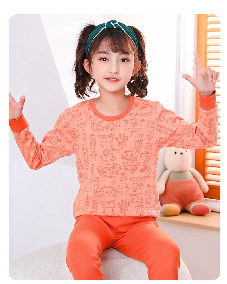 어린이 열 속옷 세트 가을과 겨울 소년 면화 바닥 셔츠 여성의 보물 만화 면화 둥근 목 가을 옷 가을 바지