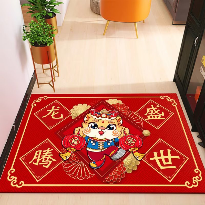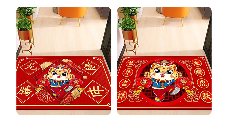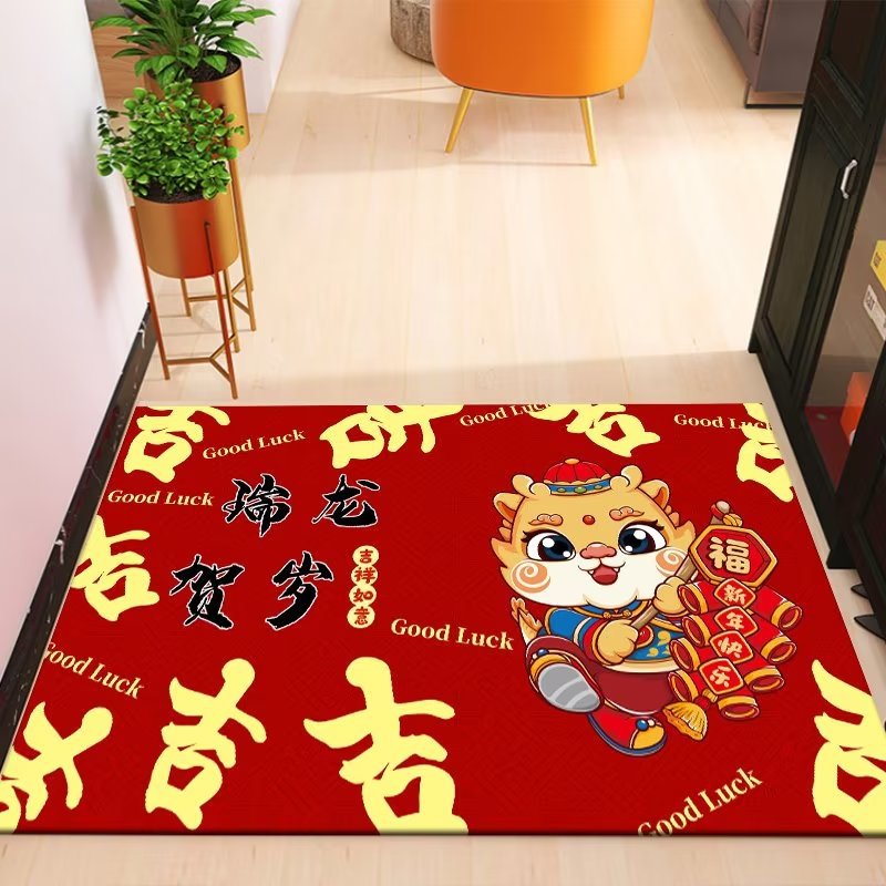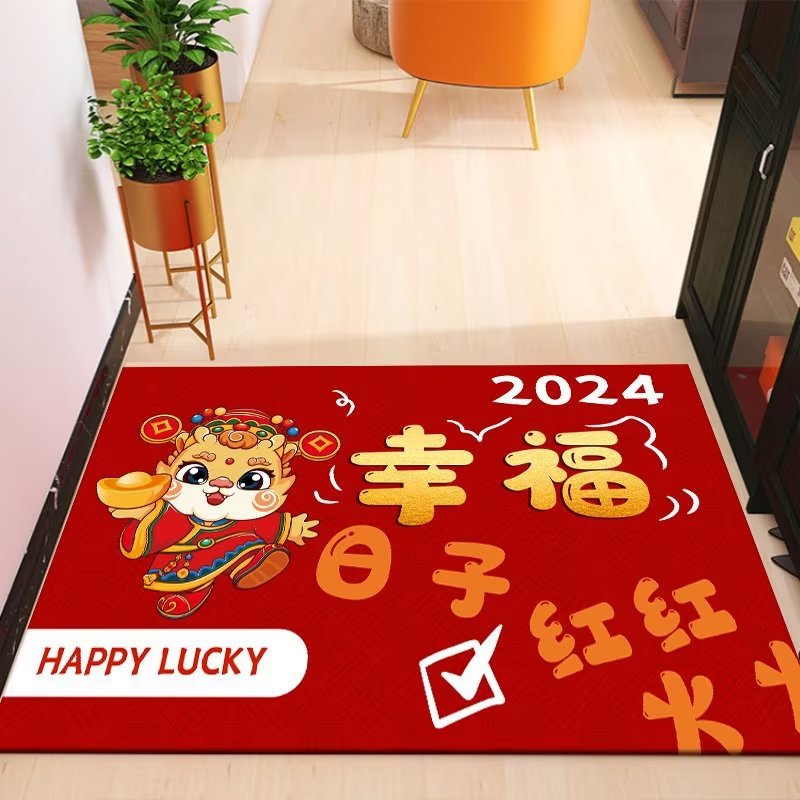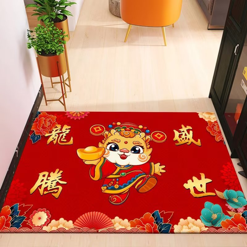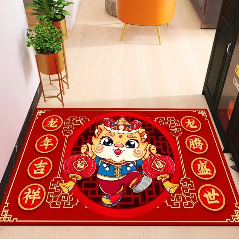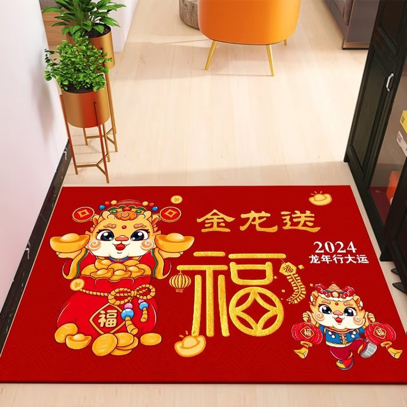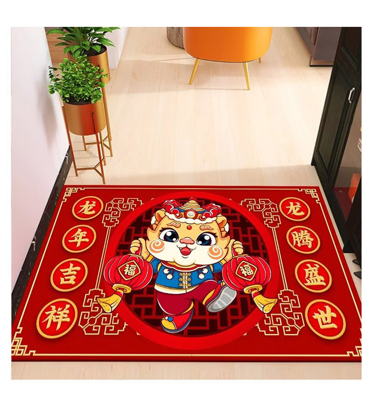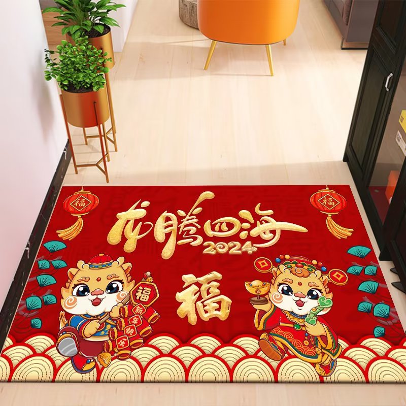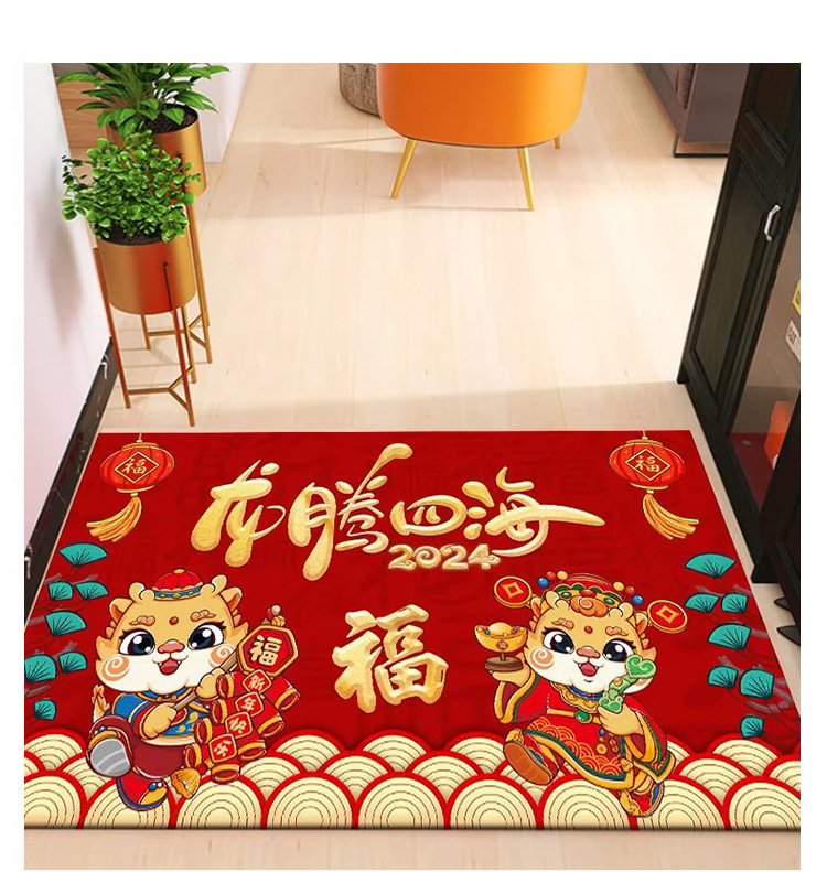 2024 새해 빨간 축제 도어 매트 드래곤 이어 흡수성 미끄럼 방지 발 매트 가정용 먼지 방지 입구 도어 매트