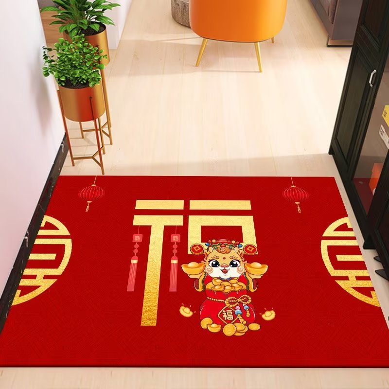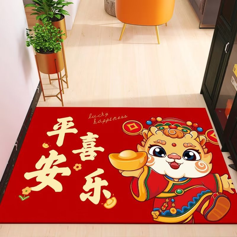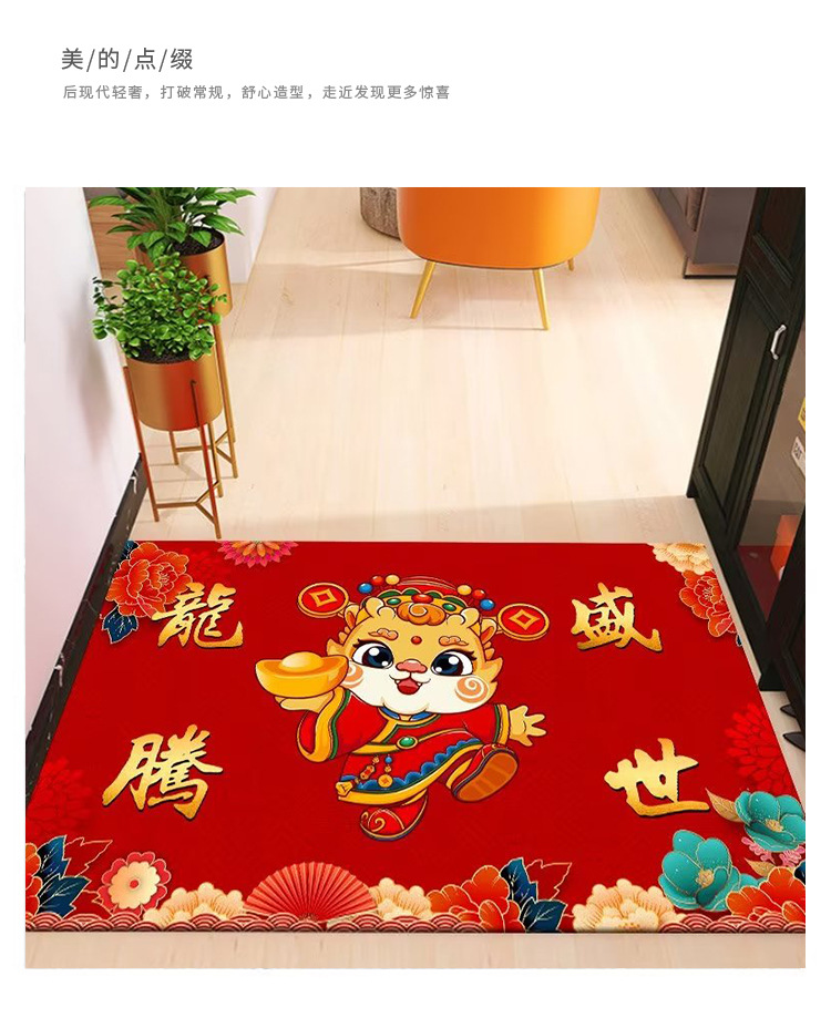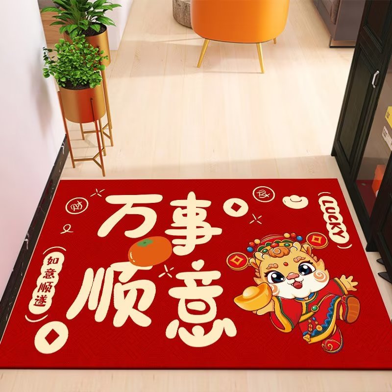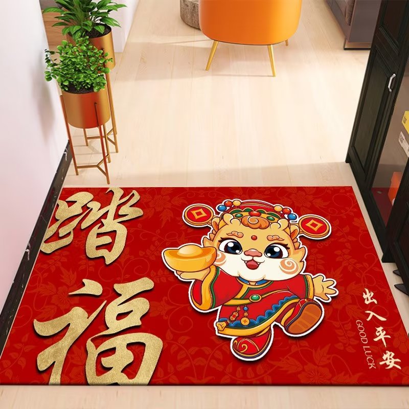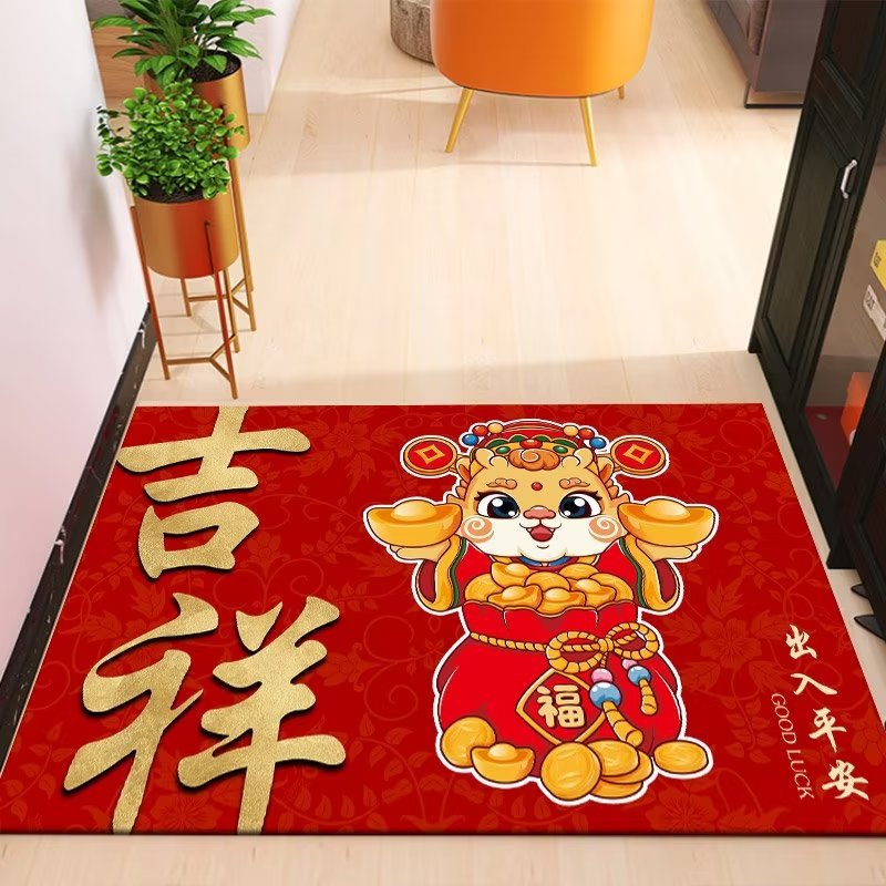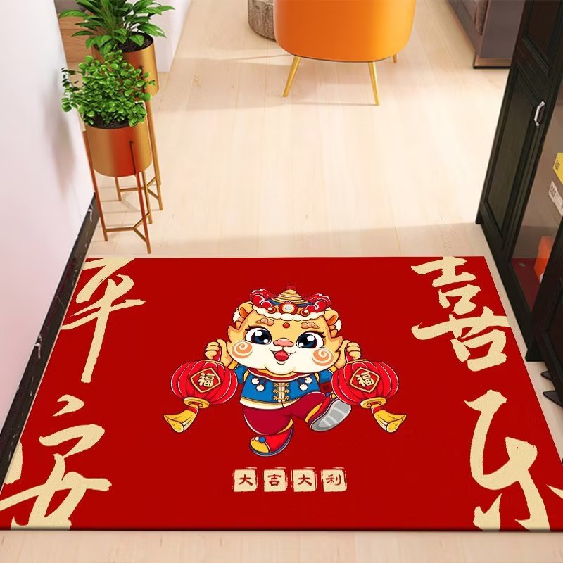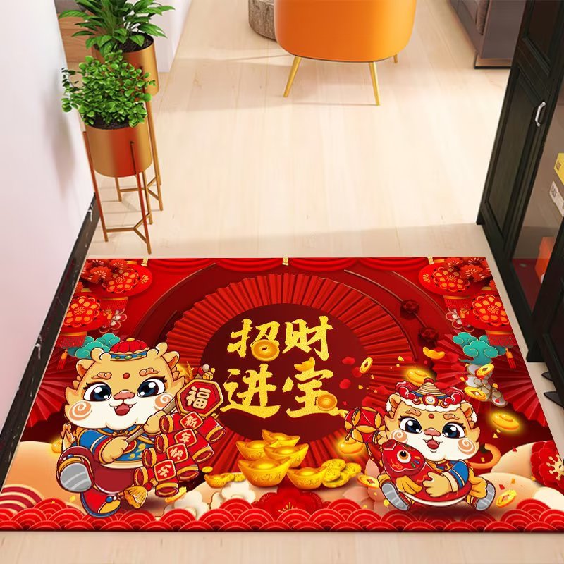 2024 새해 빨간 축제 도어 매트 드래곤 이어 흡수성 미끄럼 방지 발 매트 가정용 먼지 방지 입구 도어 매트