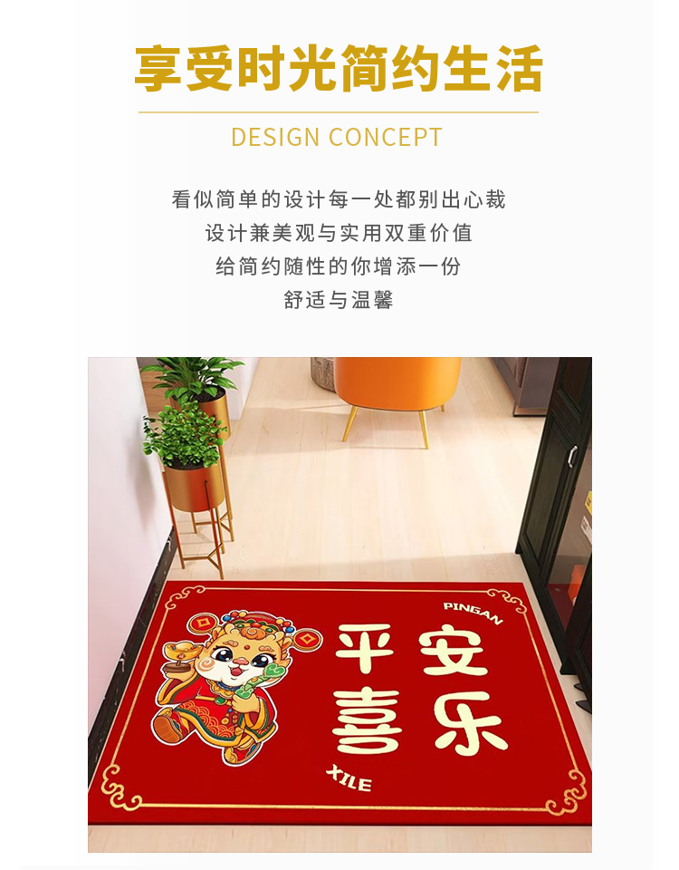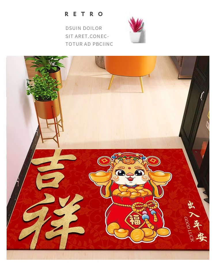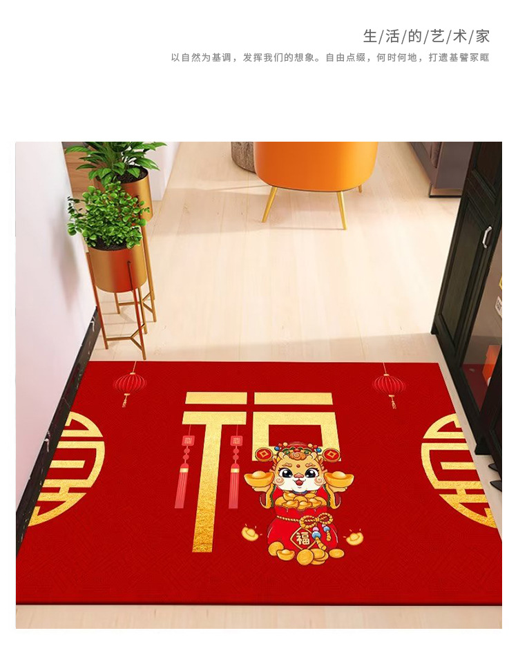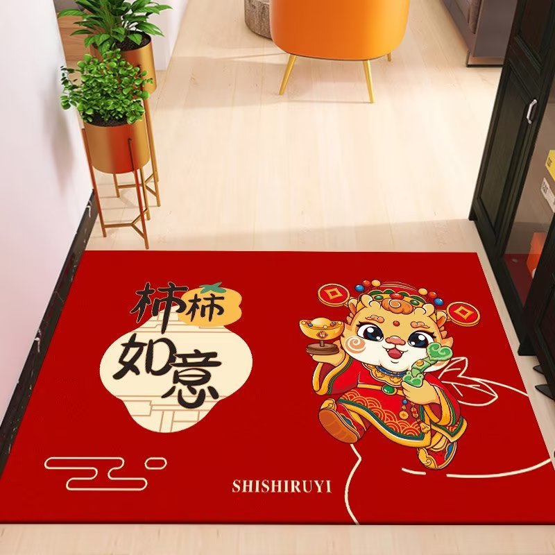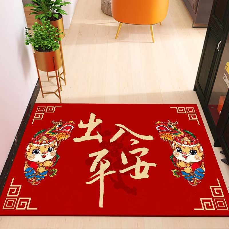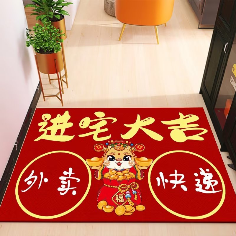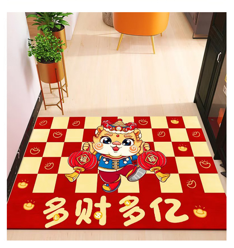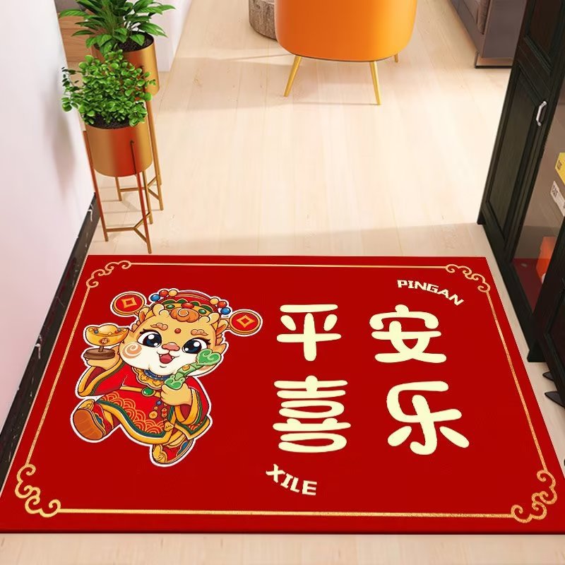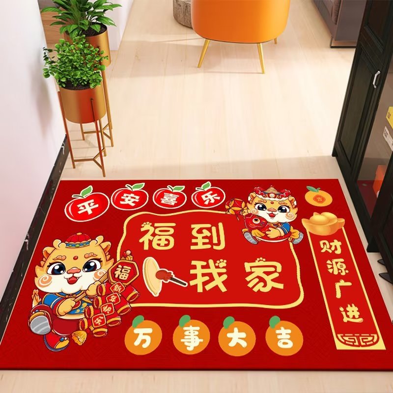 2024 새해 빨간 축제 도어 매트 드래곤 이어 흡수성 미끄럼 방지 발 매트 가정용 먼지 방지 입구 도어 매트