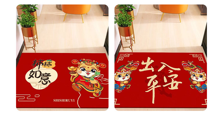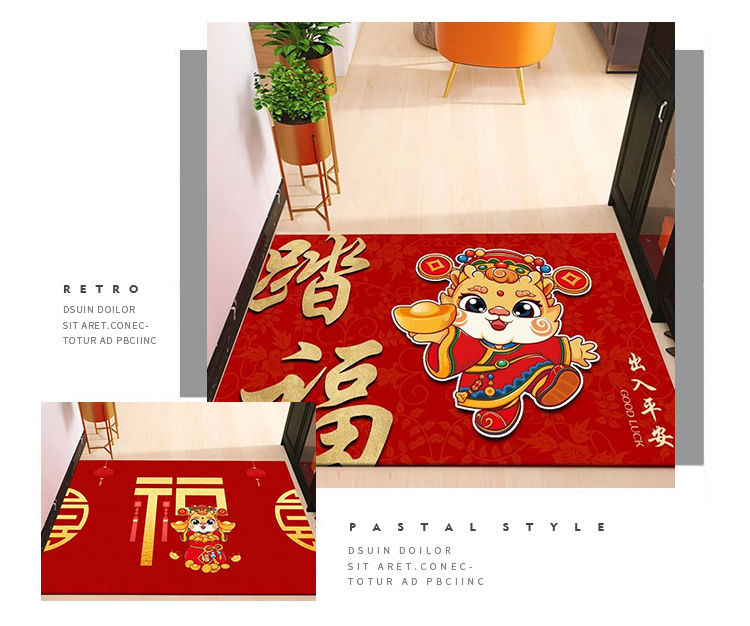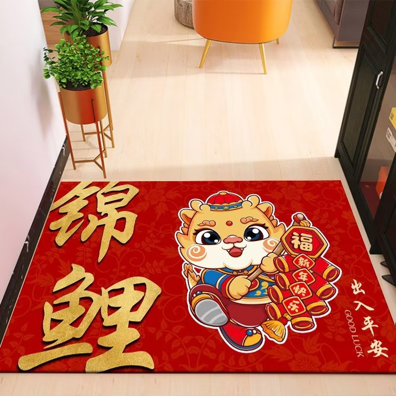 2024 새해 빨간 축제 도어 매트 드래곤 이어 흡수성 미끄럼 방지 발 매트 가정용 먼지 방지 입구 도어 매트스토어 가기