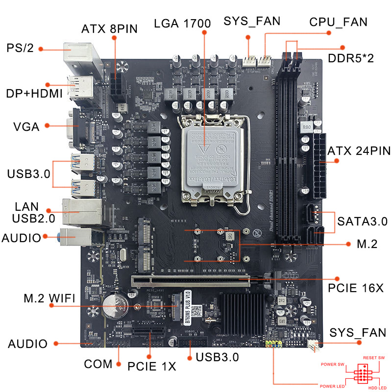 1*M.2接口支持NVME/NGFF自动识别(PCIE4.0×4速度) ;3*SATA3.0接口;