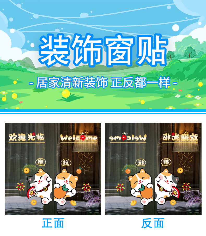 쇼핑몰 호텔 우유 차 가게 슬라이딩 도어 미러 스티커 창조적 인 만화 장식 스티커 공장에 오신 것을 환영합니다