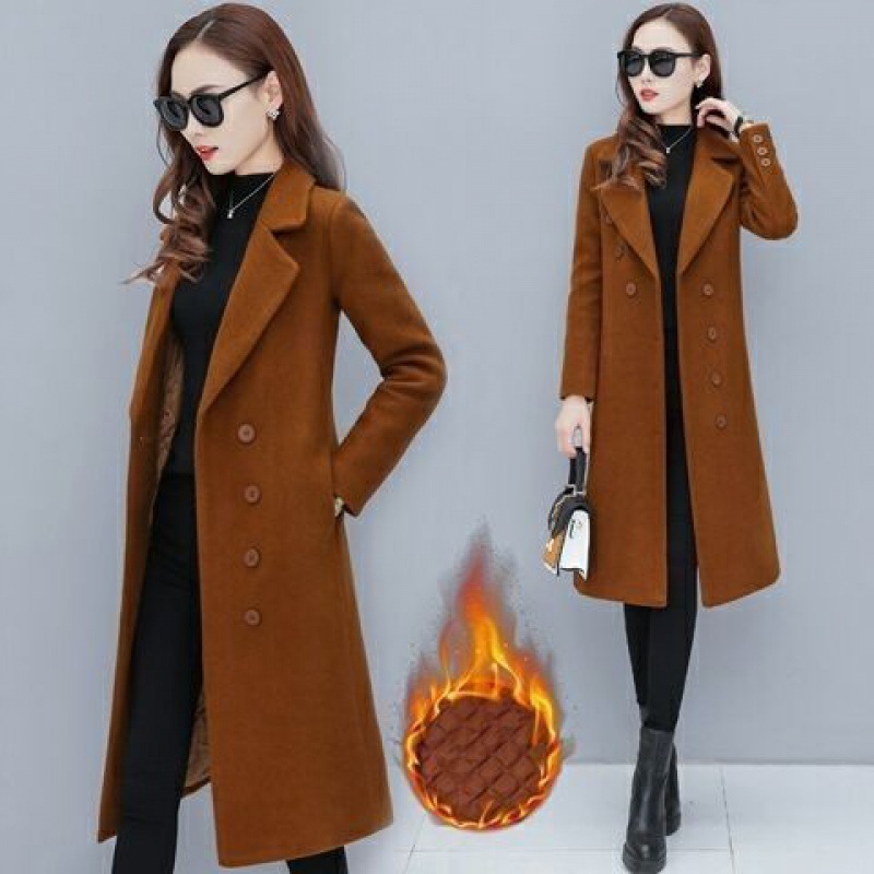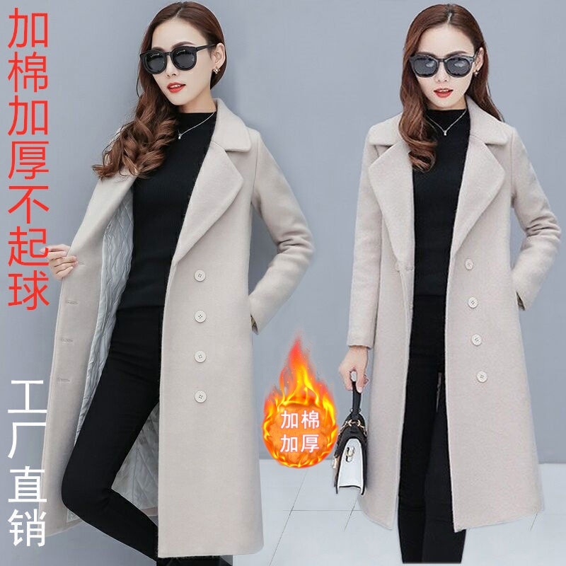 봄 가을 겨울 따뜻한 울 코트 여성용 중간 길이 심플 긴팔 여성용 울 롱 코트스토어 가기