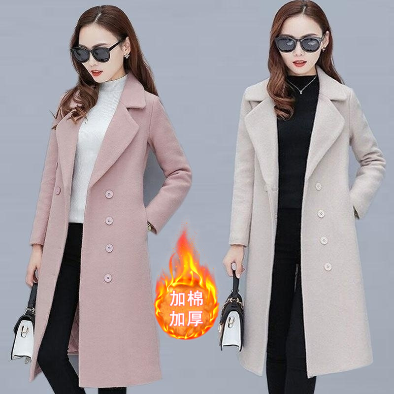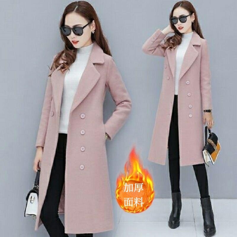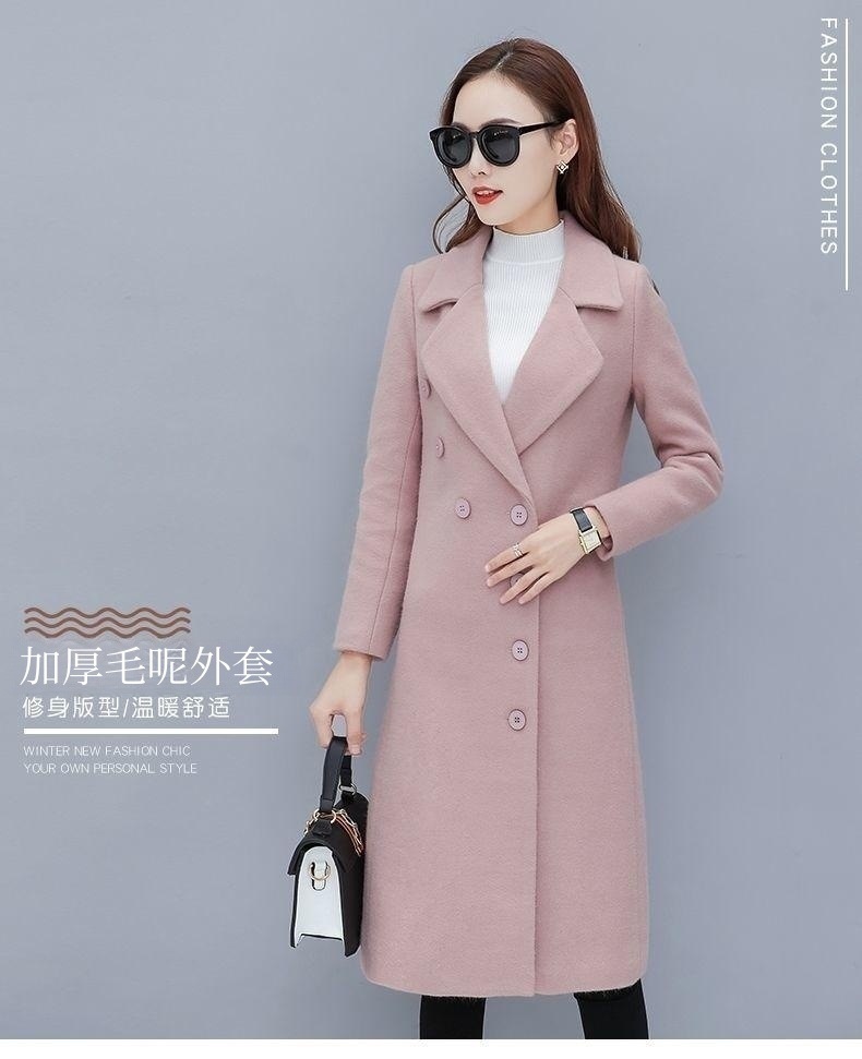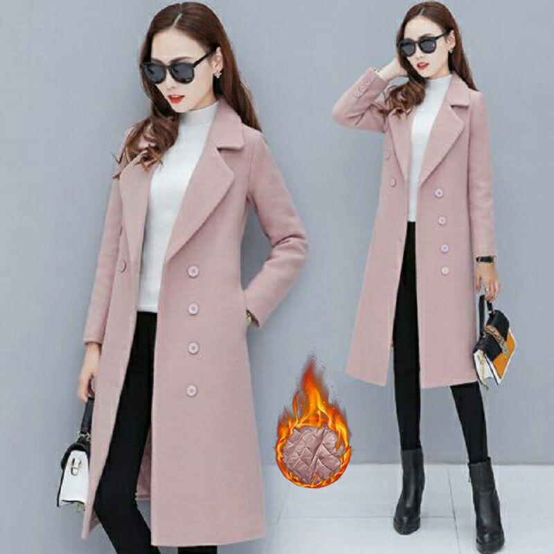 봄 가을 겨울 따뜻한 울 코트 여성용 중간 길이 심플 긴팔 여성용 울 롱 코트