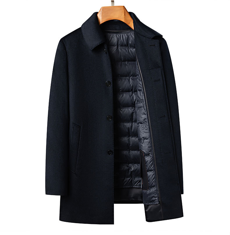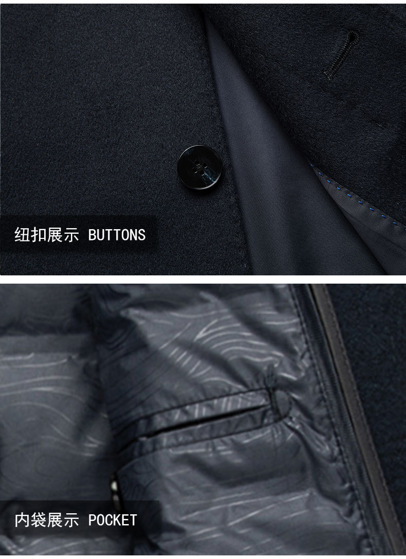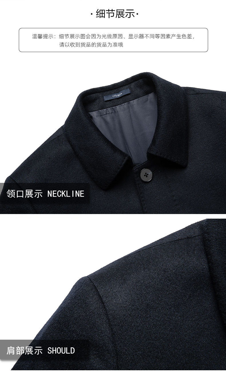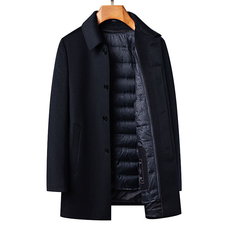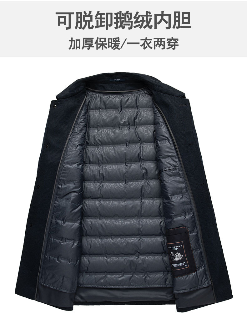 울 코트 남성 비즈니스 중간 길이 두꺼운 거위 다운 중년 및 노인 가을과 겨울 캐시미어 모직 코트 아빠 크로스 보더스토어 가기