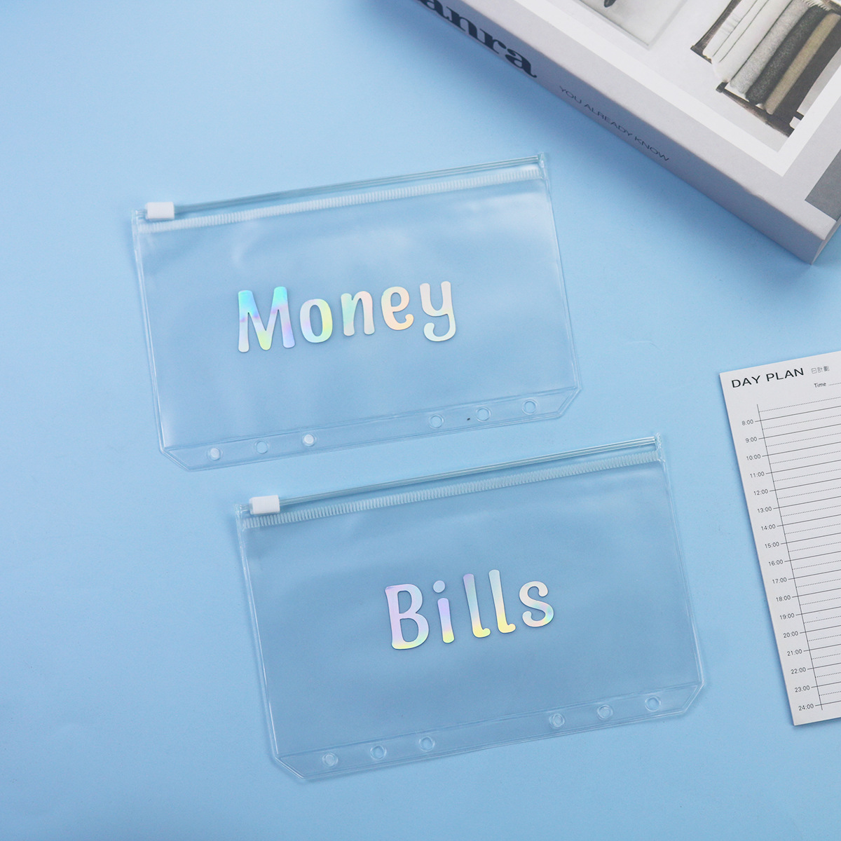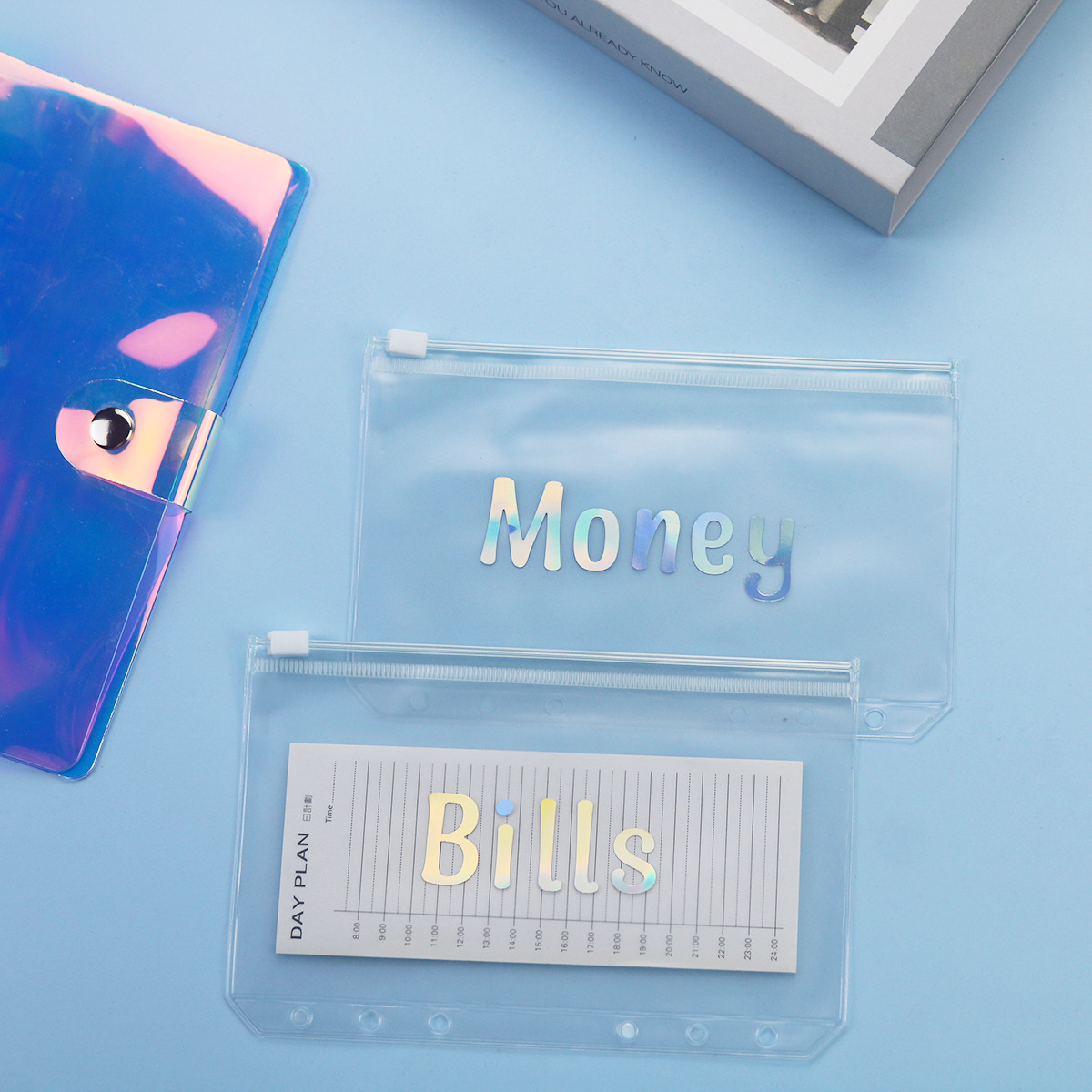 그라디언트 레이저 A6 느슨한 잎 폴더 삽입 파일 가방 투명 방수 지퍼 라벨 가방 지폐 카드 커버 보관 가방