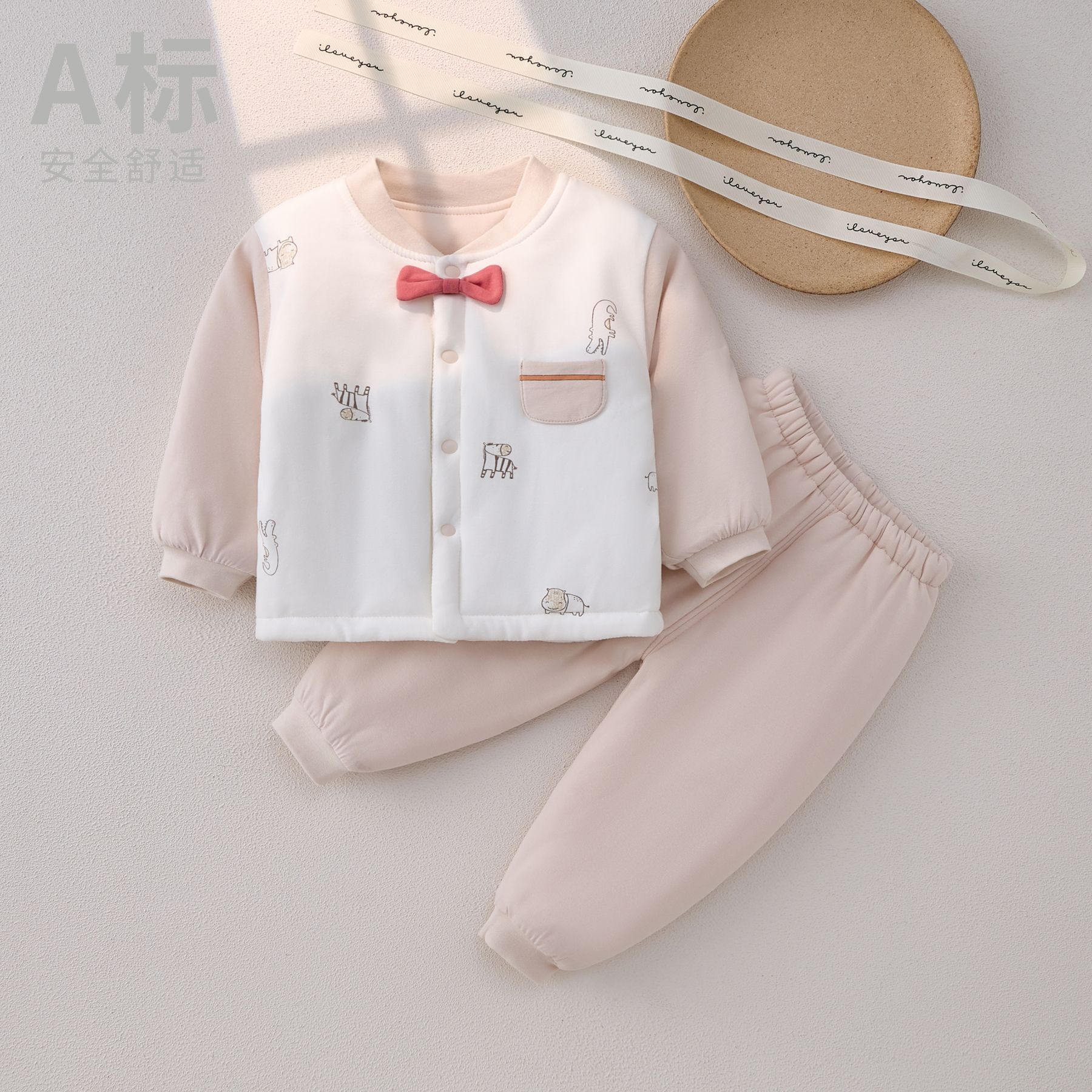 아기의 열 속옷 세트 면 기모 두꺼운 남자의 2 피스 면 옷 겨울 옷 면 아기의 가을 옷과 바지