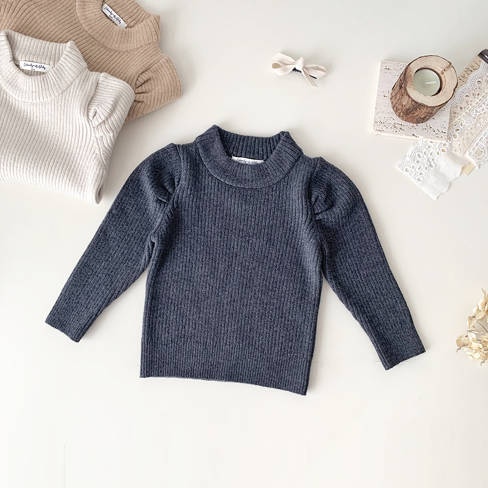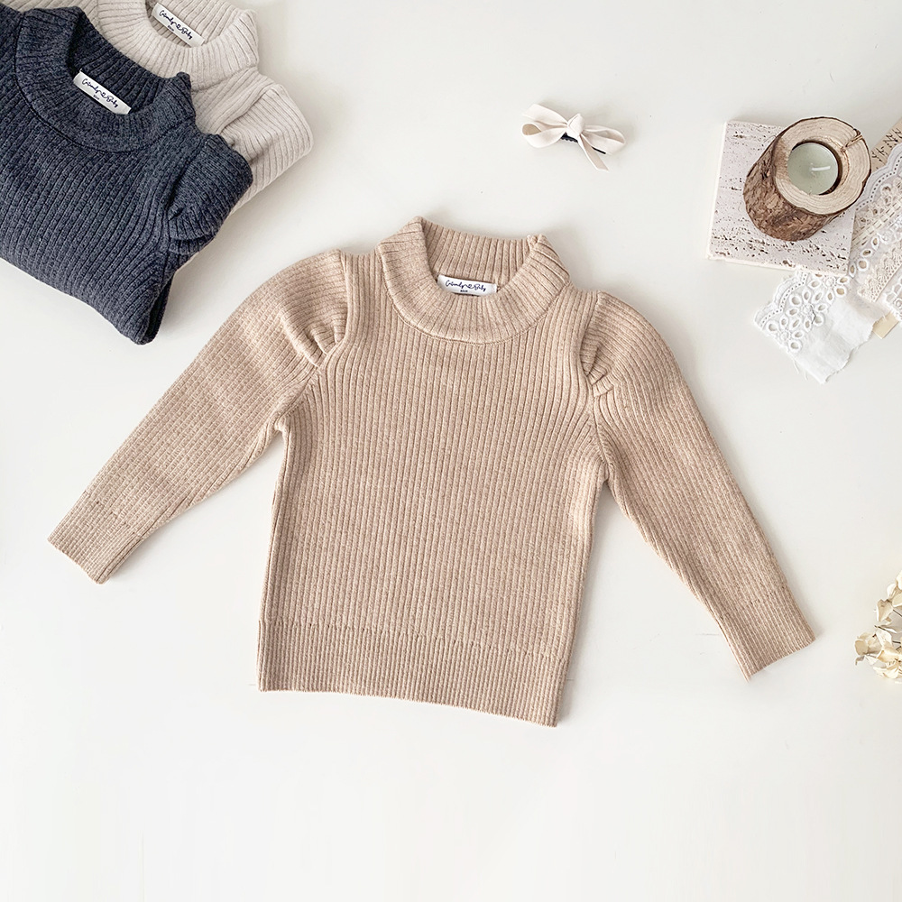 재고정리 특가, 환불 및 교환 불가 Cutemily 가을 여아용 하이넥 골지 울 베이스레이어 스웨터 아동용 베이스레이어