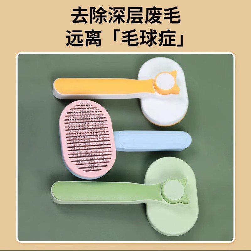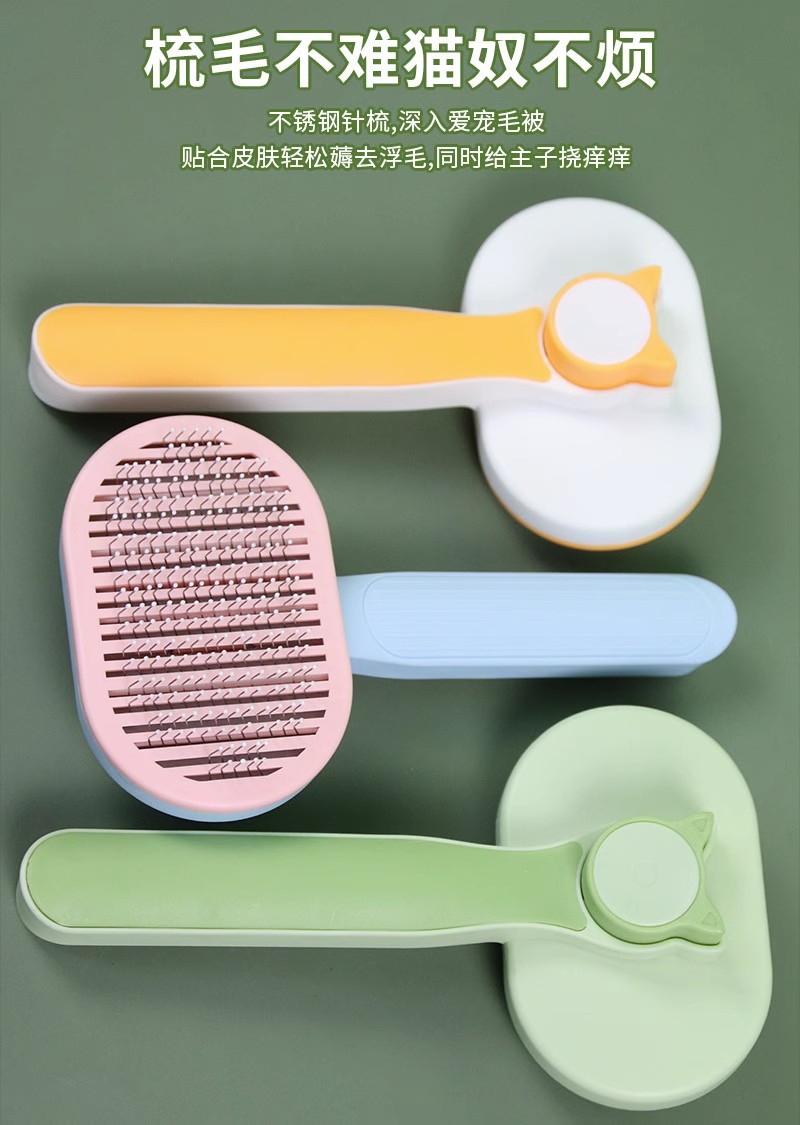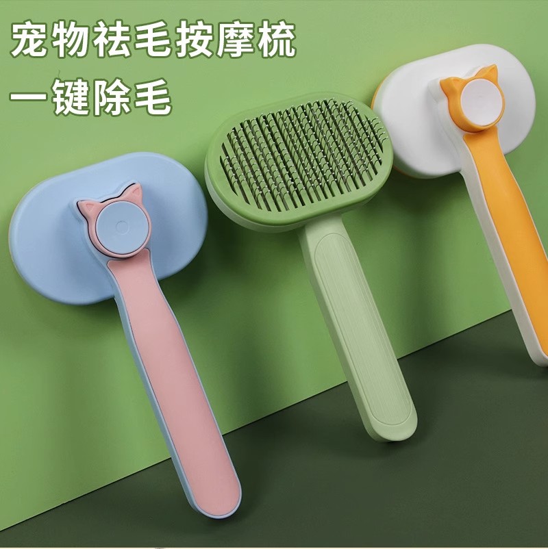 공장 도매 고양이 빗 원 버튼 제모 스테인레스 바늘 빗 고양이 청소 미용 용품 애완 동물 빗스토어 가기