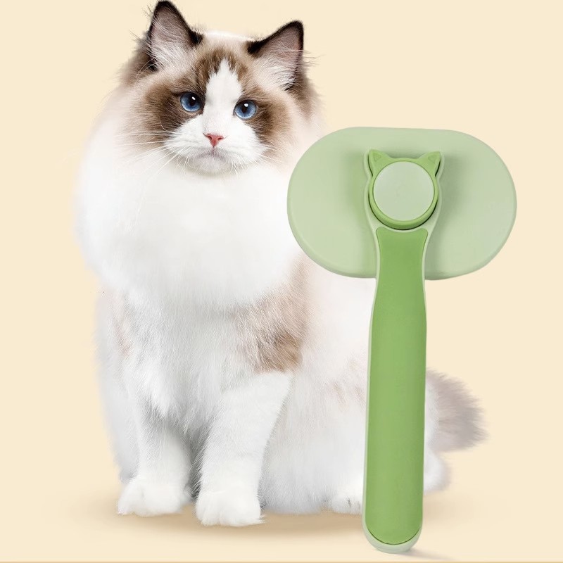 공장 도매 고양이 빗 원 버튼 제모 스테인레스 바늘 빗 고양이 청소 미용 용품 애완 동물 빗