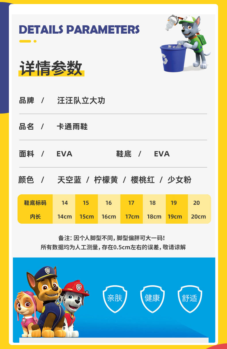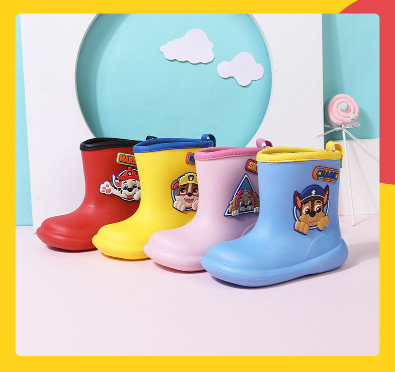 왕 왕 팀 아기 레인 부츠 어린이 미끄럼 방지 장화 소년 귀여운 유치원 소녀 방수 신발 어린이 고무 신발