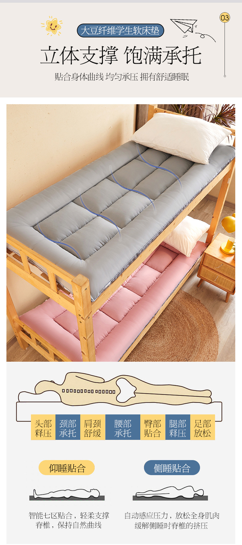학생 기숙사 상하 이층 두꺼운 매트리스 대두 섬유 매트리스 가정용 싱글 및 더블 폴딩 소프트 쿠션 도매