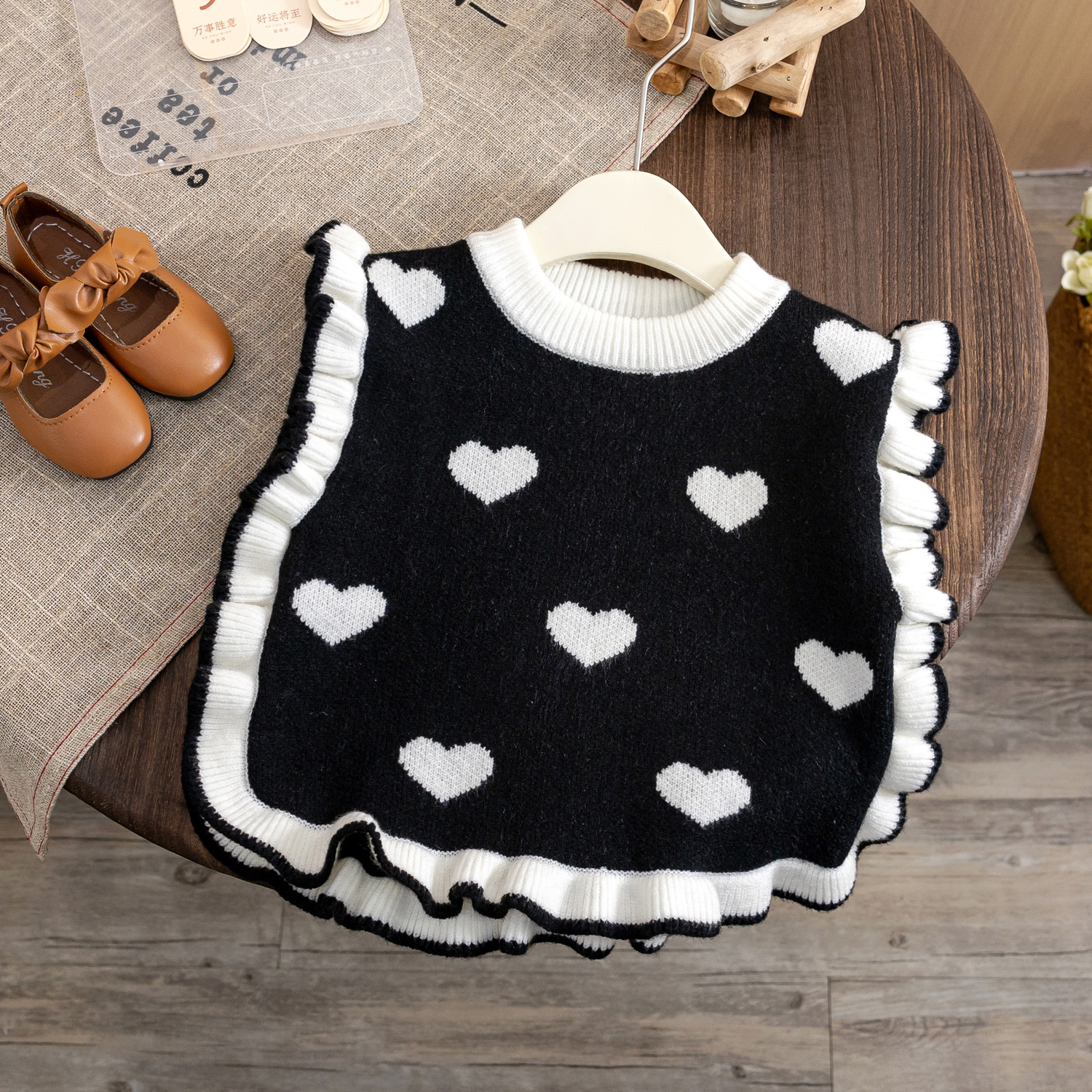 韩国童装2023秋季新款女童爱心针织马甲花边上衣休闲百搭毛线背心