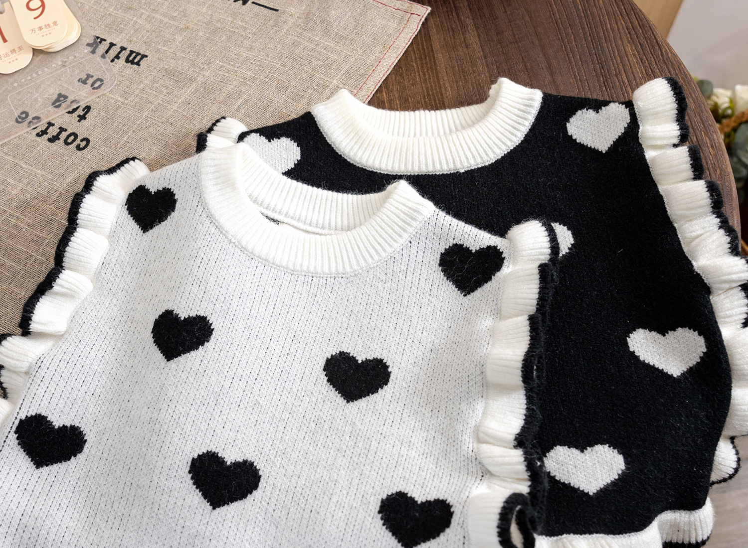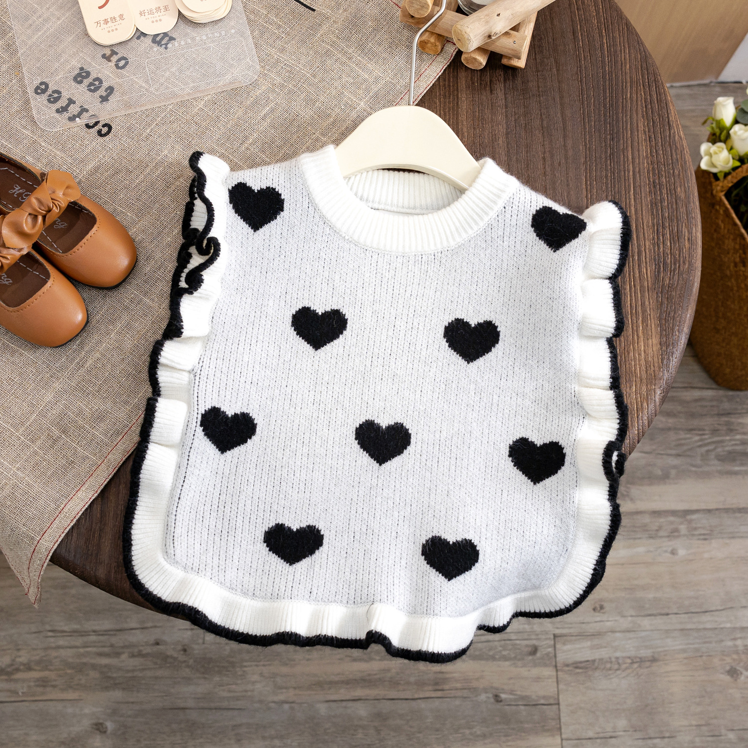 한국 아동복 2024 가을 신상 여아 하트 니트 조끼 레이스 상의 캐주얼 다용도 모직 조끼