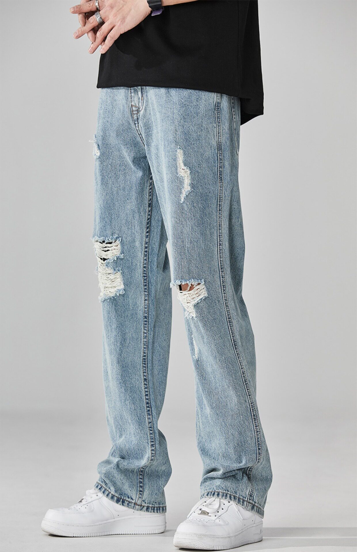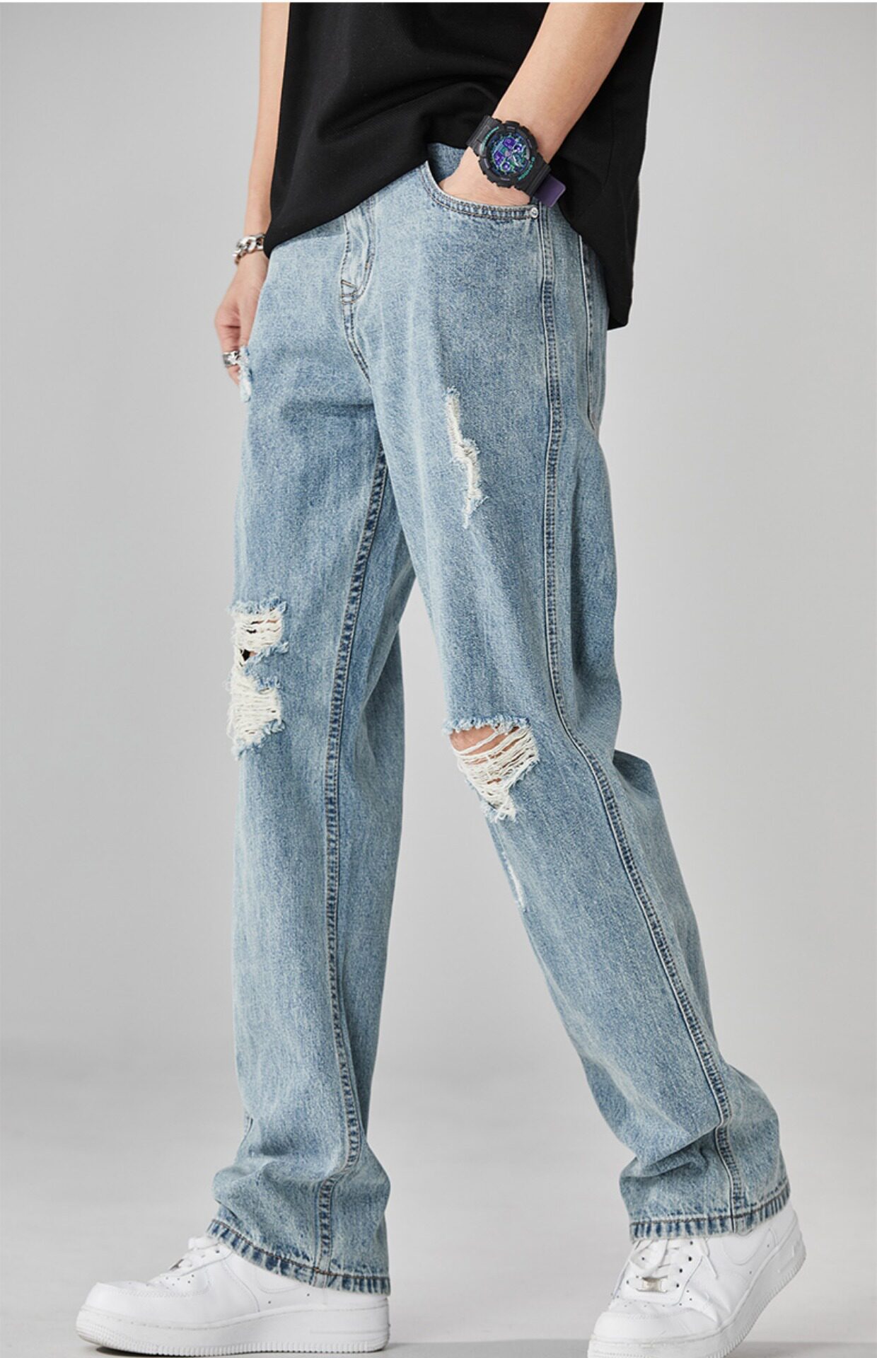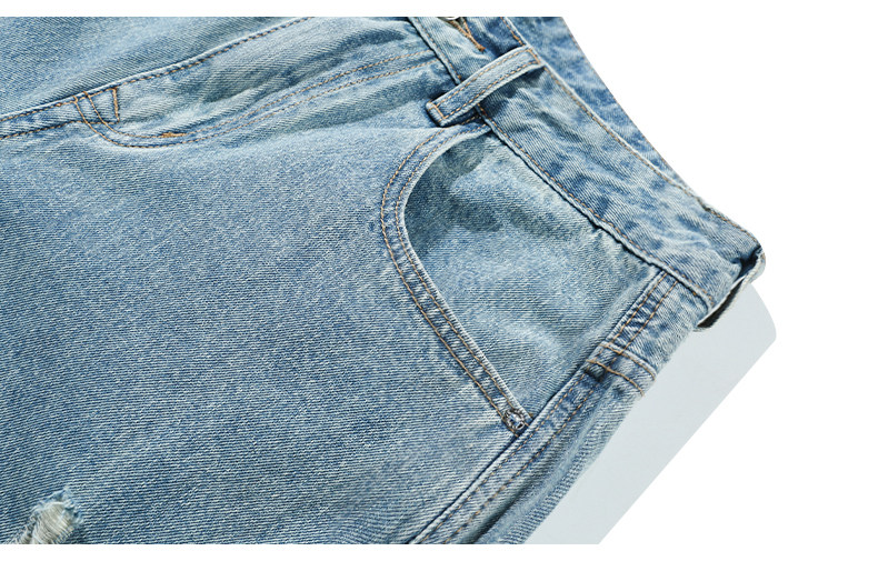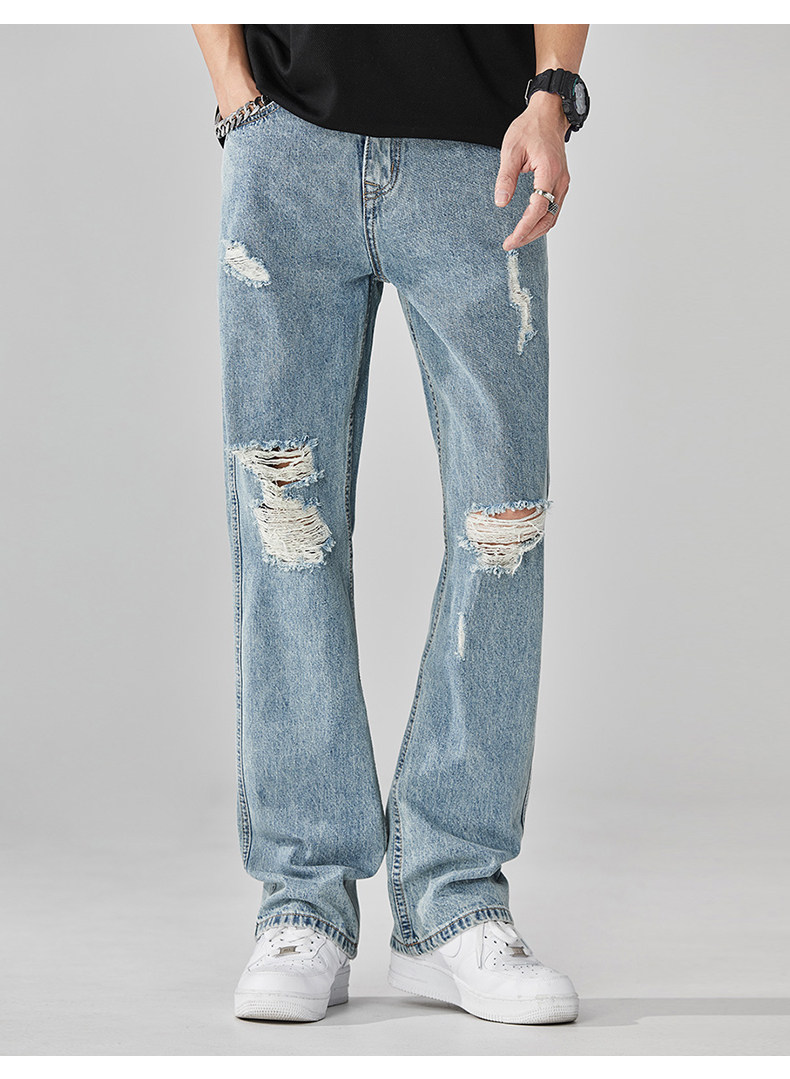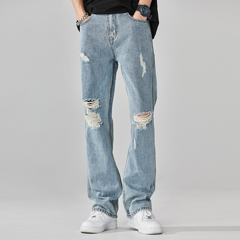 찢어진 청바지 남자의 트렌디 브랜드 느슨한 스트레이트 여름 미국 스타일 씻어 복고풍 덤피 슈아이 하이 스트리트 디자인 센스 바지스토어 가기